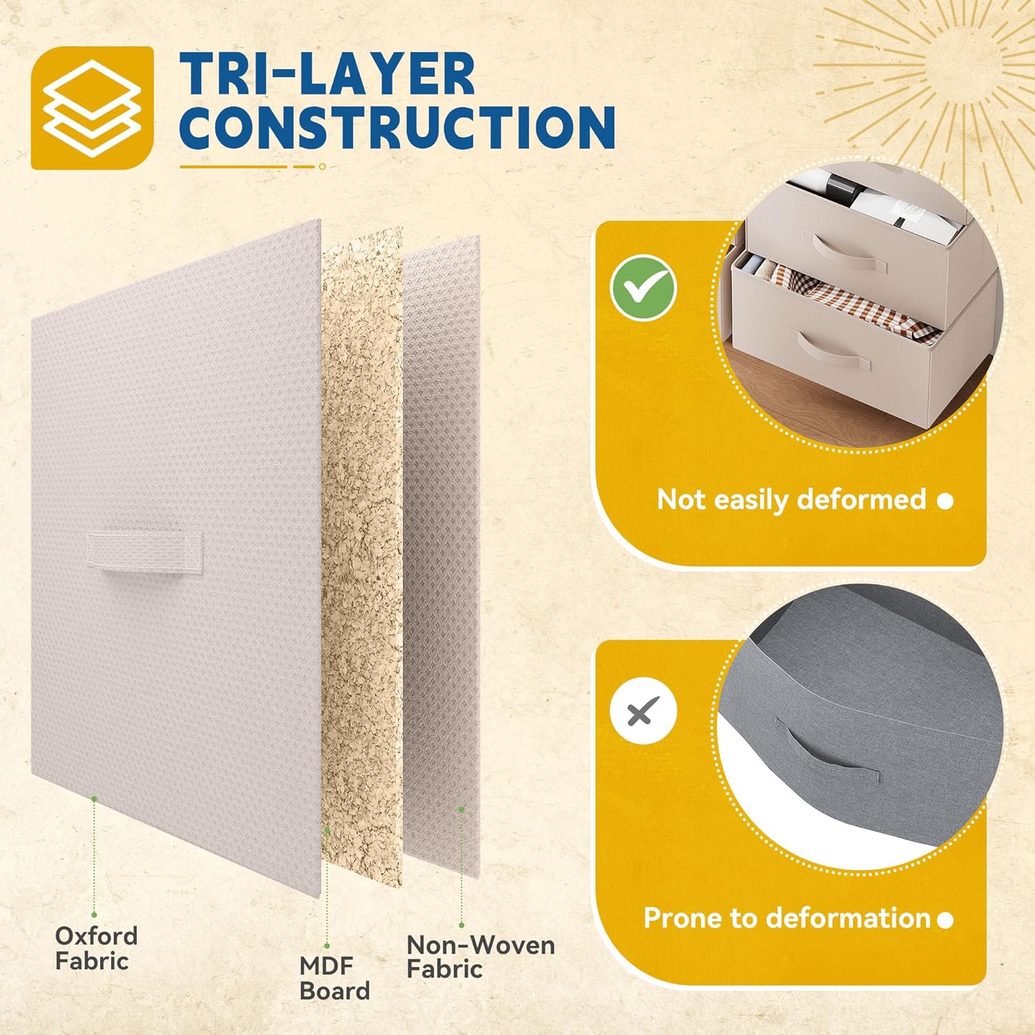 - VERSATILE COLOR SCHEME- Highlights a sleek, modern design combining sleek rustic brown fabric drawers, a sturdy black metal frame, and a wooden tabletop for living rooms, hallways, entryways, etc.