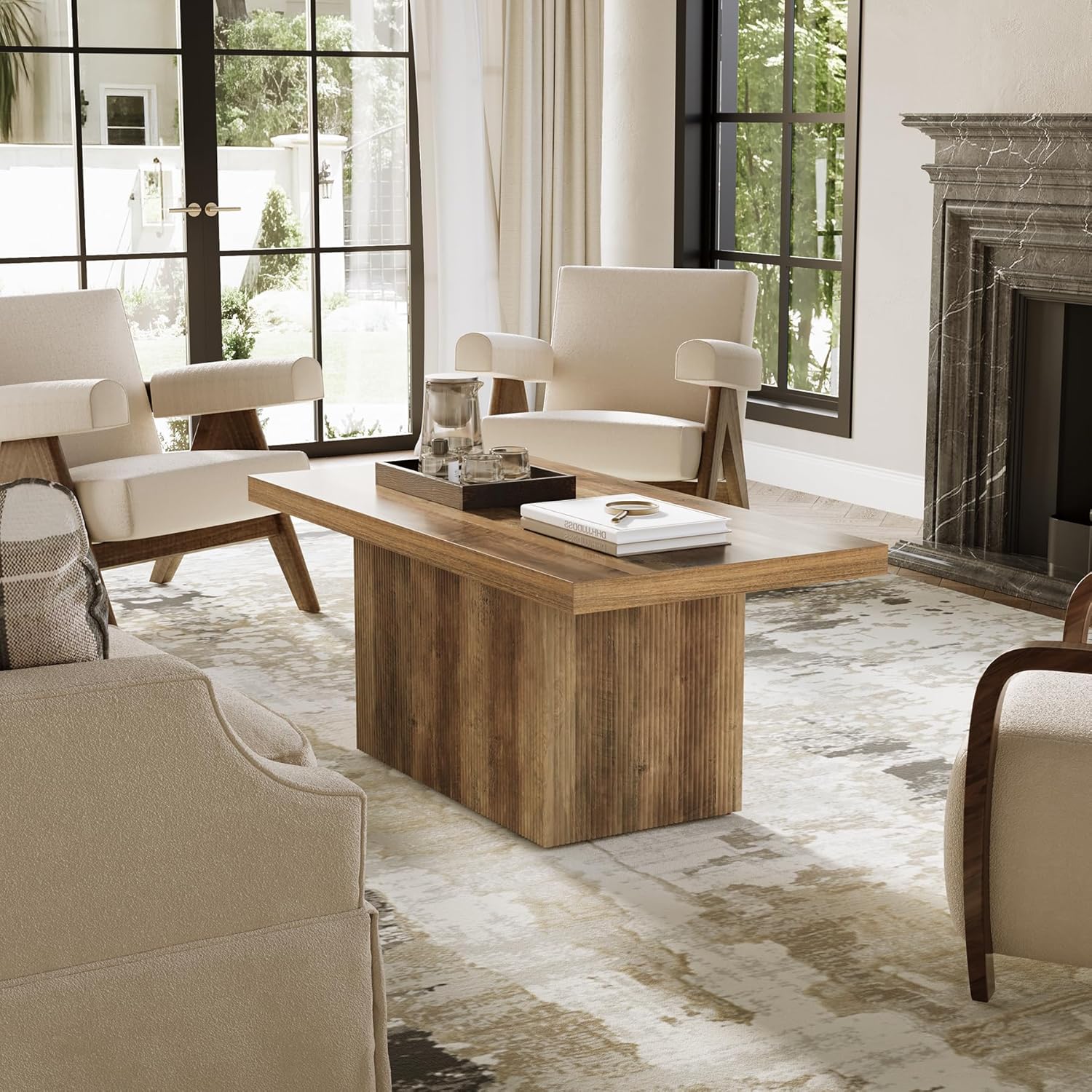 47-Inch Large Coffee Table with Pedestal, Living Room Center Table Rectangle Thickened Tabletop, Farmhouse Low Cocktail Tea Furniture for Living Room, Apartments, Rustic Brown