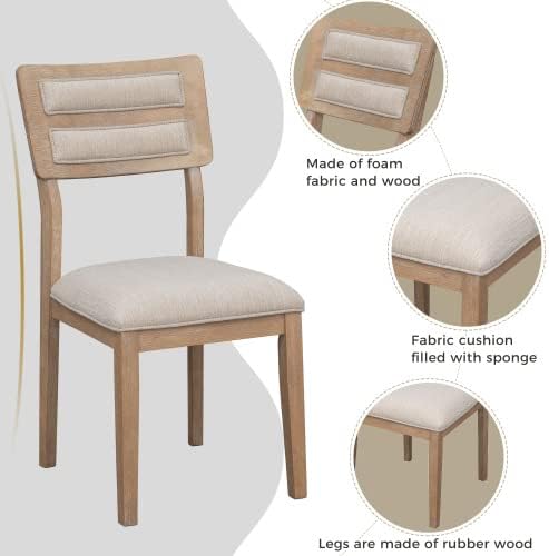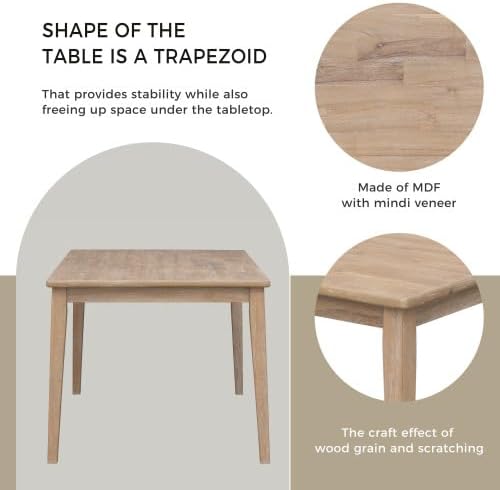 - Durable Materials: Crafted from sturdy rubber wood legs, MDF tabletops with mindi veneer (wood grain finish), and plywood-backed upholstered chairs with foam-padded seats for comfort. The bench and chairs include protective floor pads to prevent scratches.