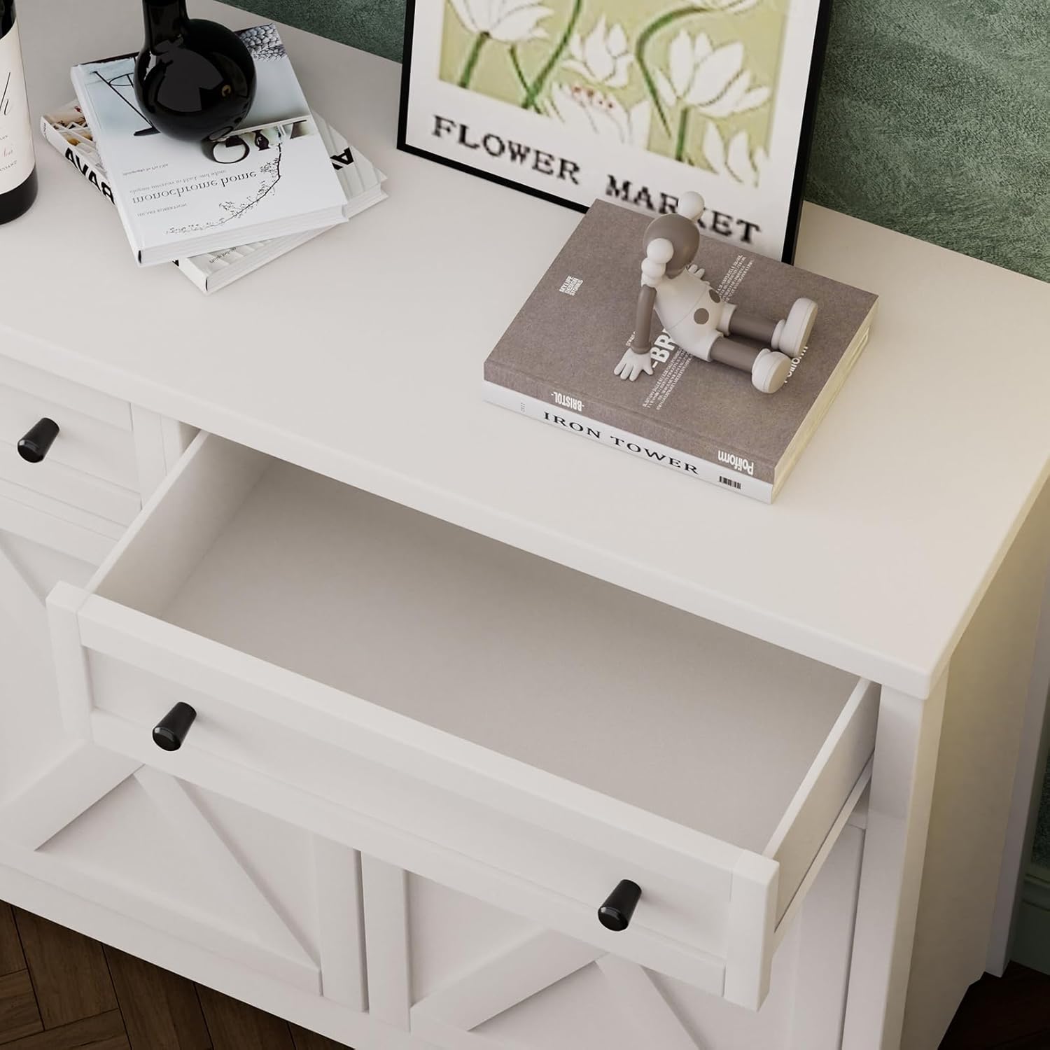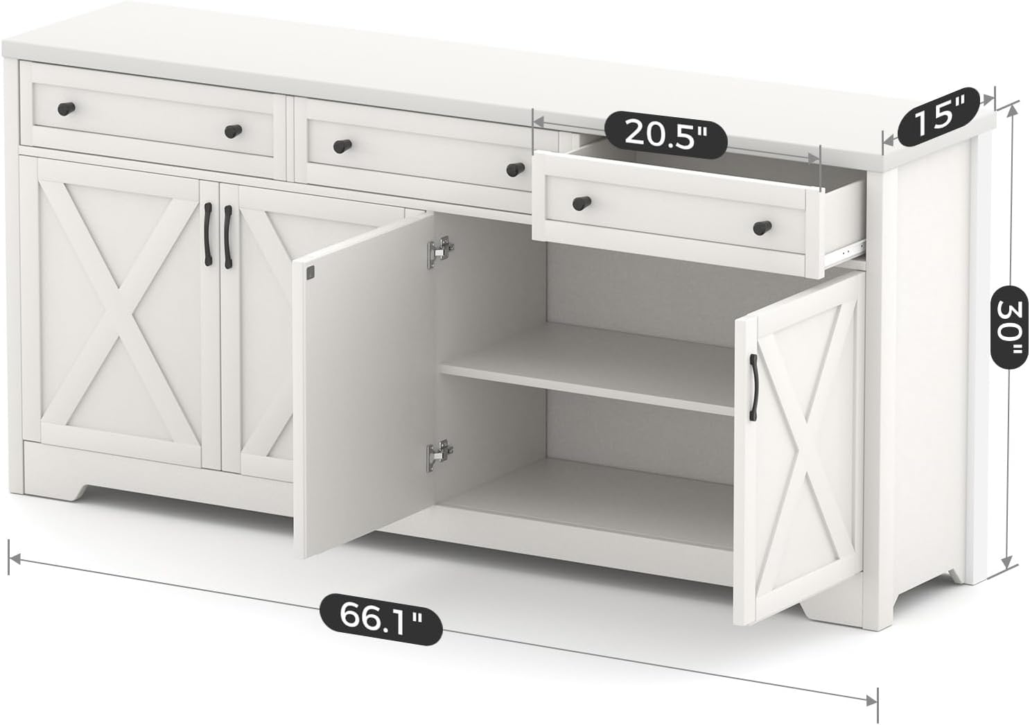 66'' Farmhouse Sideboard Buffet Cabinet with Storage, Large Kitchen Storage Cabinet with Barn Doors Drawers, White Coffee Bar Table for Dining Room Kitchen