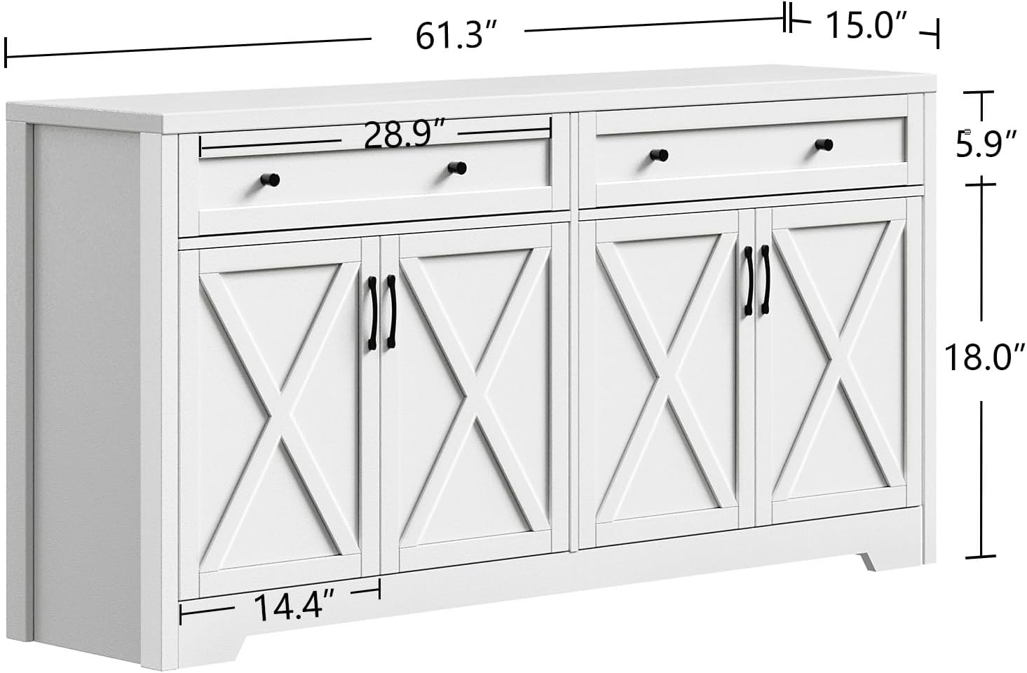 - 【Elegant Sideboard】 The barn doors, with their graceful lines, add a touch of elegance and seamlessly blend into modern farmhouse decor, showcasing fine craftsmanship