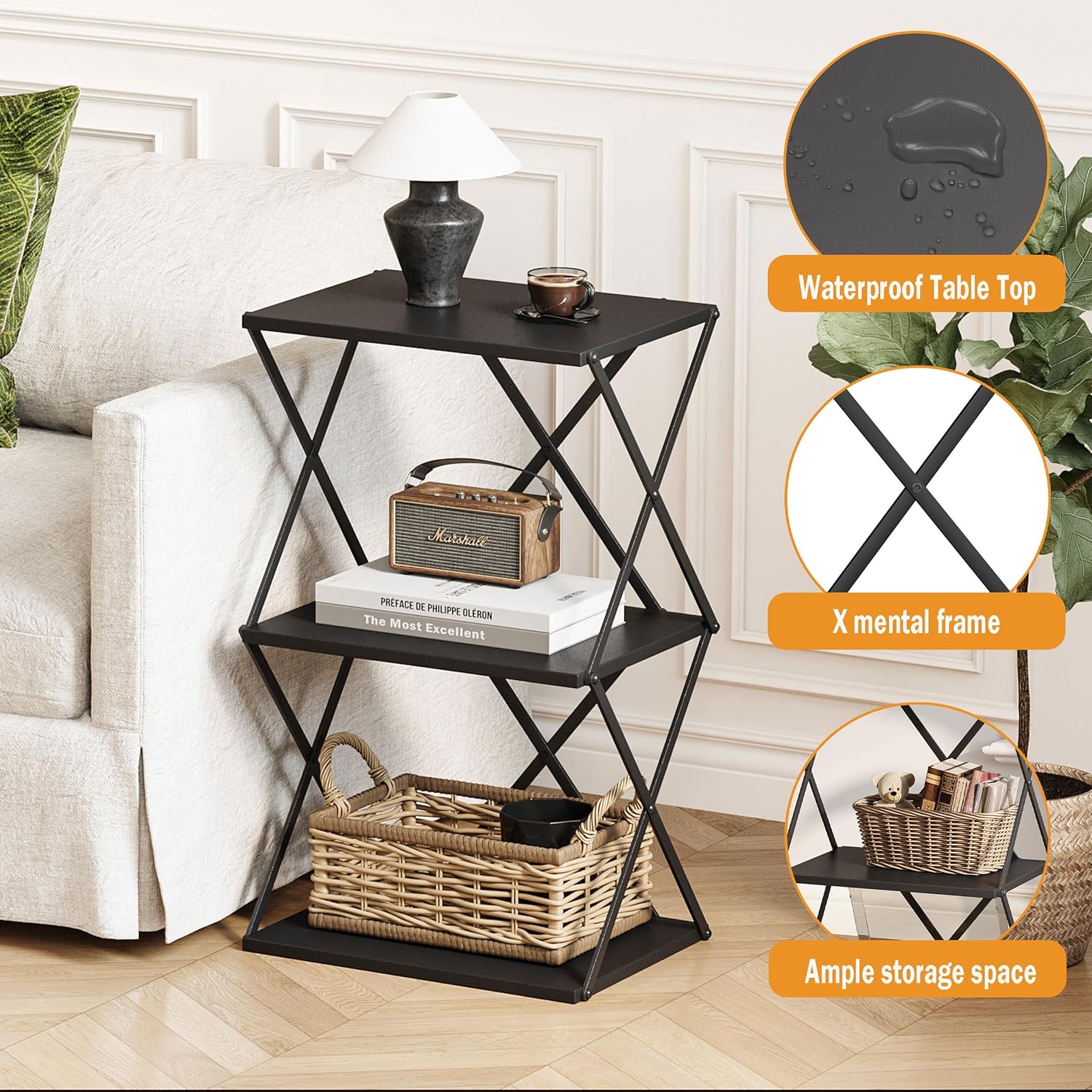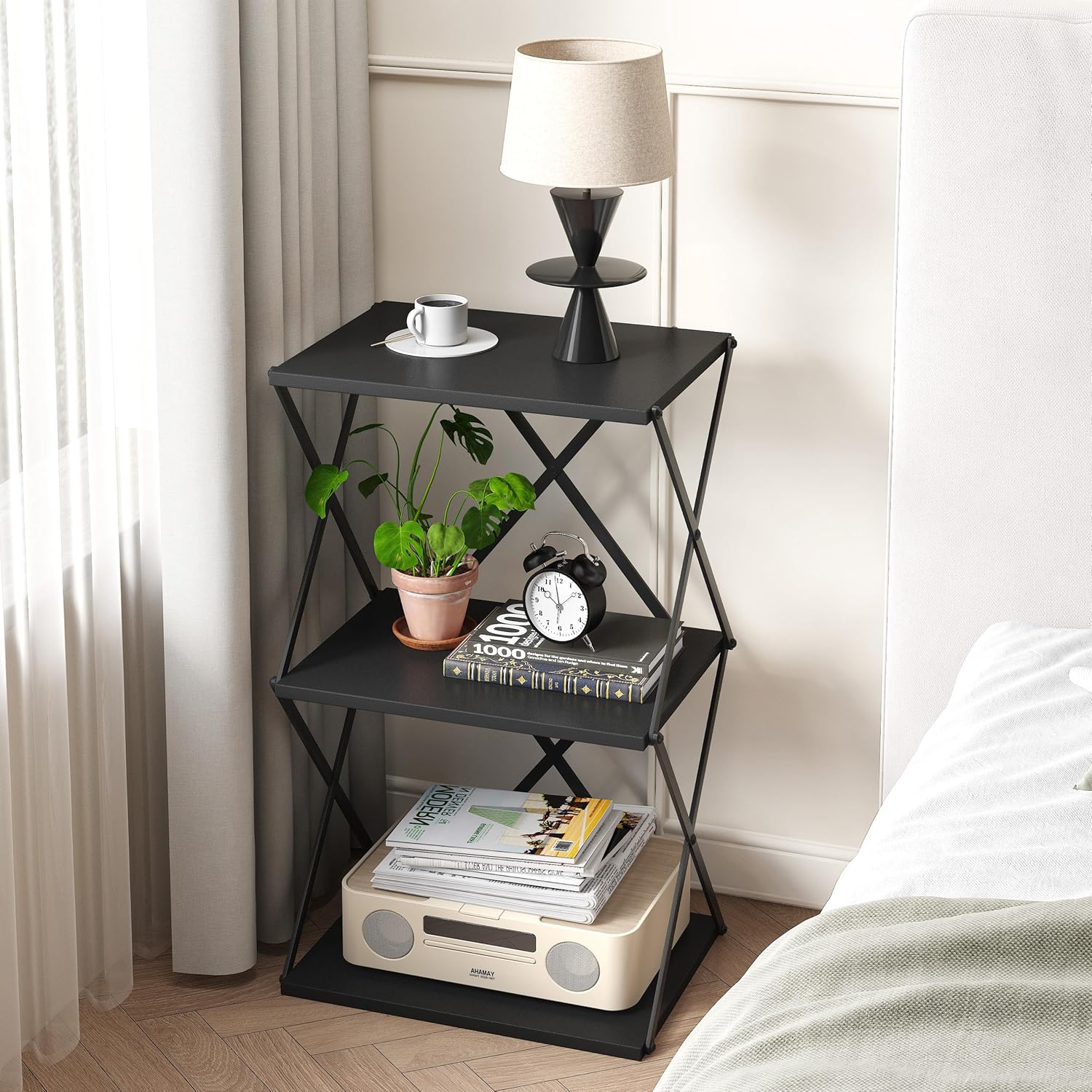 - Space-Saving: This end table measures 11.81"D x 15.75"W x 20.47"H, and 3-Tier Nightstand with Storage Shelf to meet your storage needs, such as lights, alarm clock, books, and beverages, keeping everything you need close at hand
