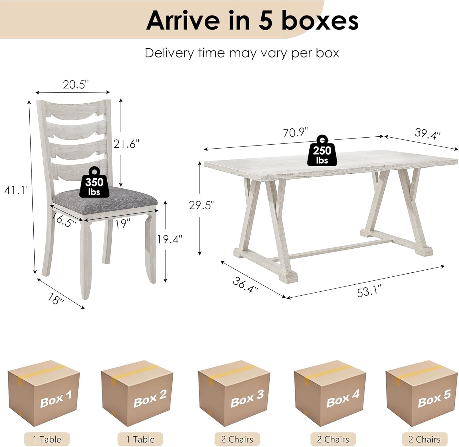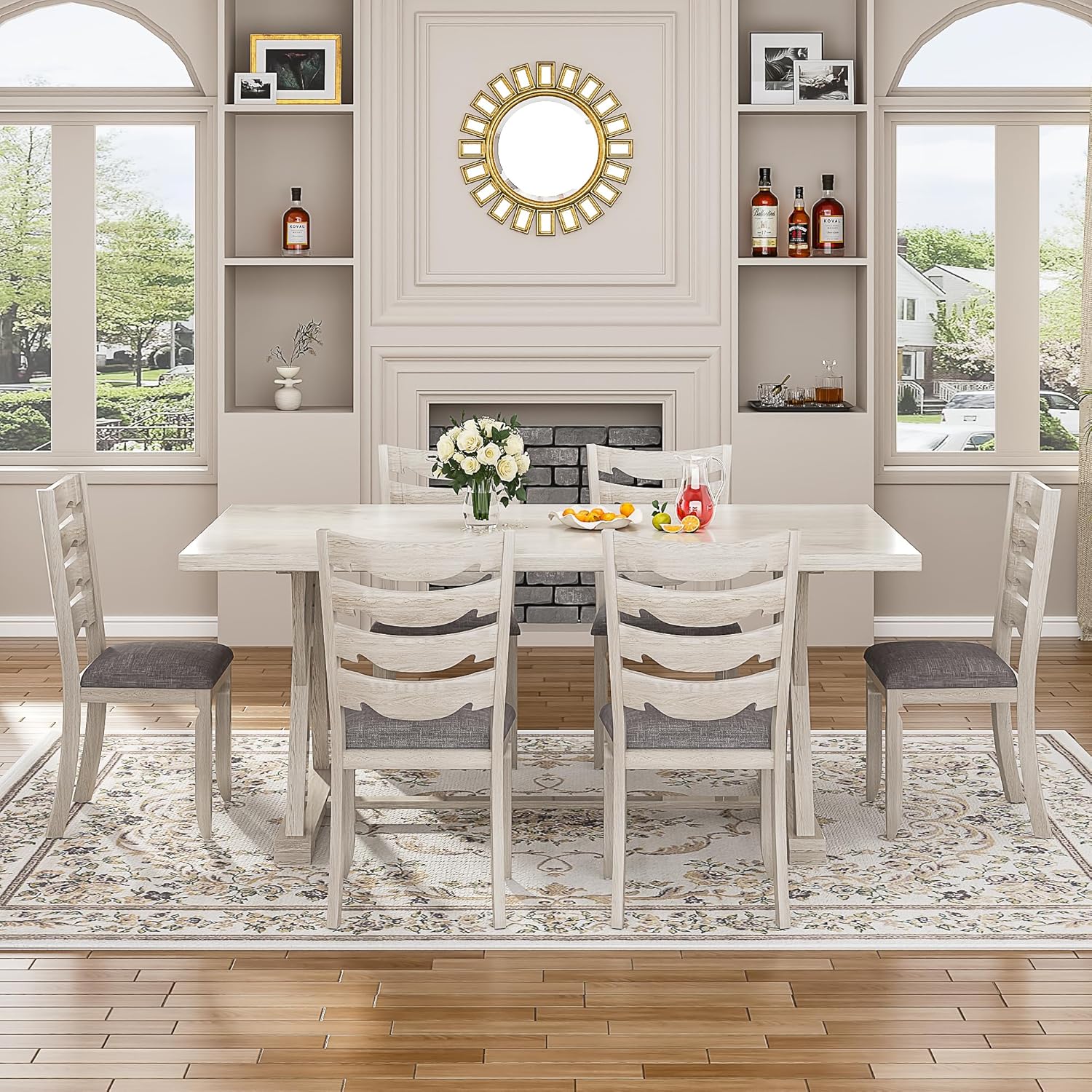 7-Piece Solid Wood Dining Table Set with 6 Upholstered Chairs - Modern Design for Kitchen & Small Spaces, for Dining Room, Kitchen, Washed Gray