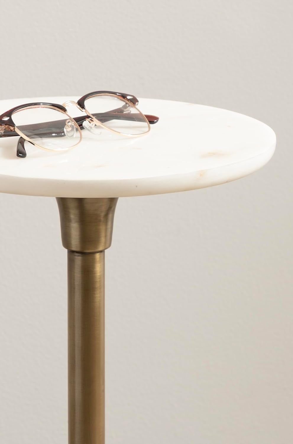 Kate and Laurel Nisha Traditional Marble Round Drink Table, 10 x 10 x 22, White Marble, Antique Brass, and Black, Vintage Mango Wood Circle Mini Table for Use as Plant Stand or Living Room Decor