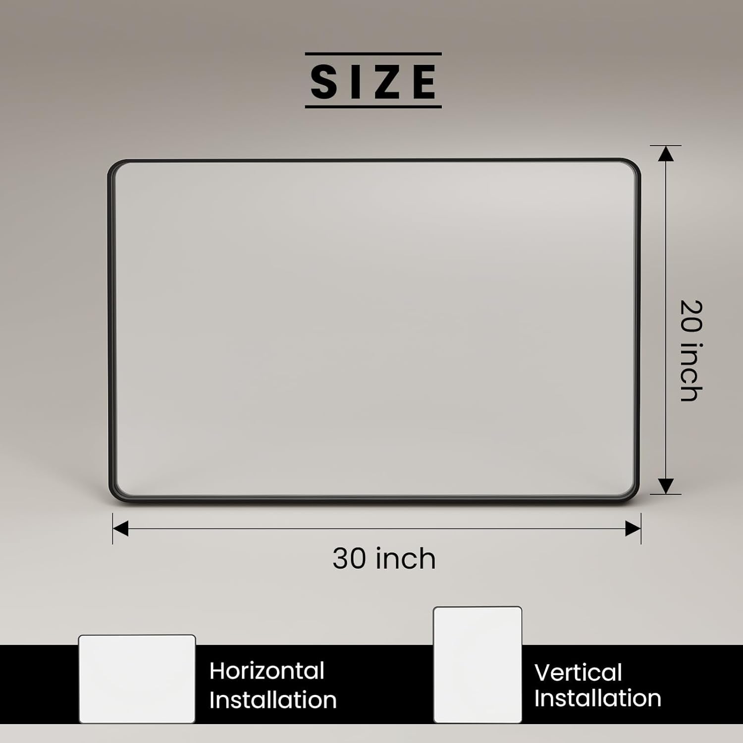 20X30 Inch Black Bathroom Mirror, Black Metal Framed Mirror for Wall, Rounded Rectangle Matte Bathroom Vanity Mirror with Tempered Glass, Anti-Rust, Horizontal/Vertical