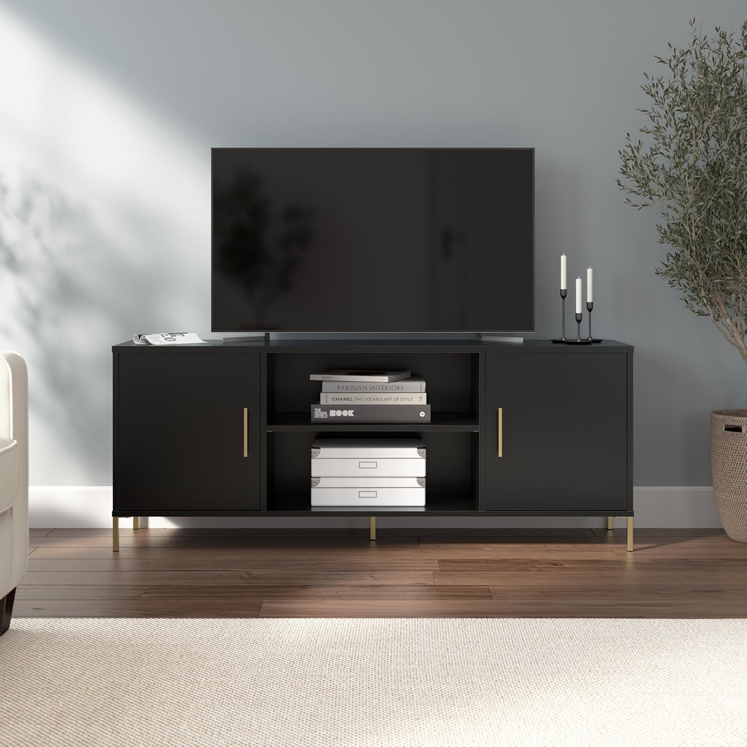 Bush Home Essence 58W TV Stand with Storage, Living Room Furniture, Essence Collection, Black Stipple