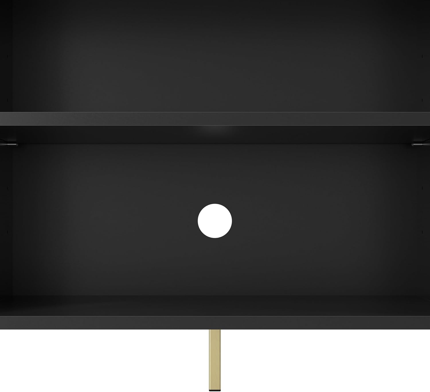 - ORGANIZATION YOUR WAY: Slide the middle adjustable shelf to feed cords down to the built-in wire management punchout, keeping your space tidy and cable-free. Media console features 1 adjustable and 1 fixed shelf that support up to 25 lbs. each.