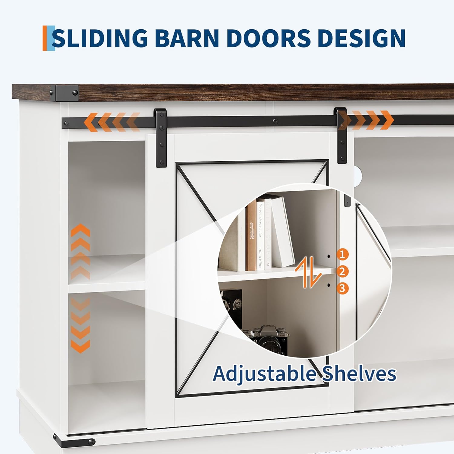 CABIHOME Farmhouse TV Stand and Entertainment Center for TV Up to 65 Inches with Sliding Barn Doors, TV Media Storage Console Table and Furniture for Living Room, Bedroom, White & Brown