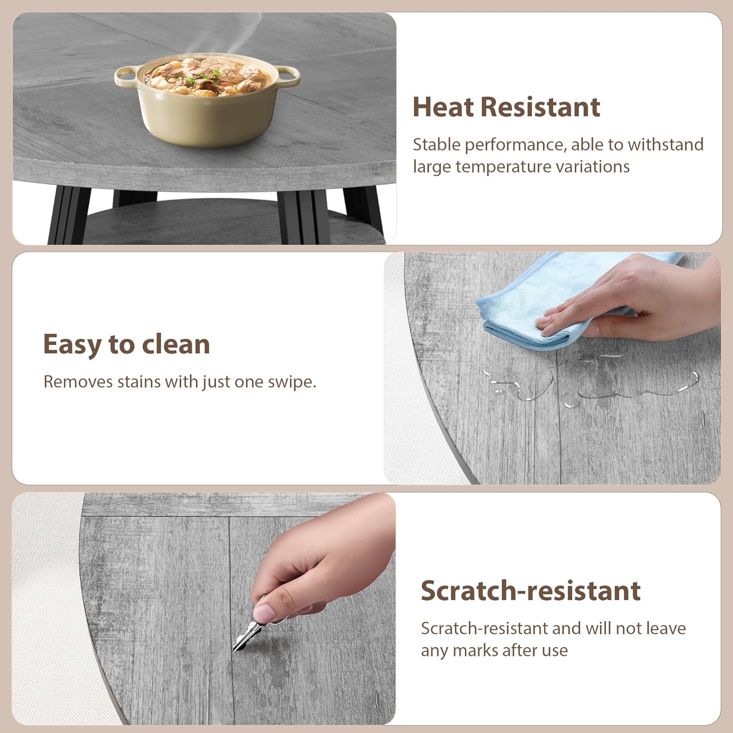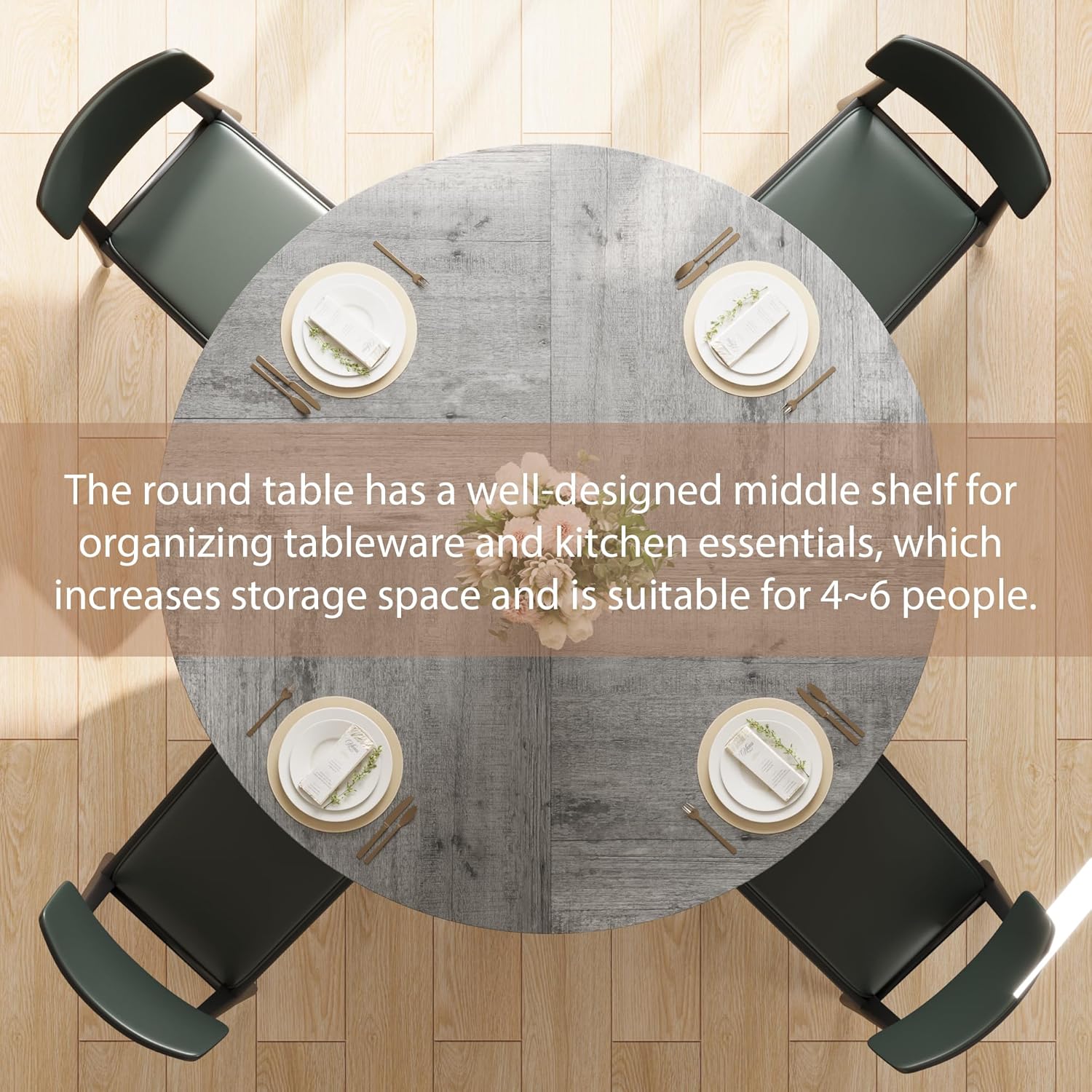 - 【Ideal for families of 4-6】 (Package includes 1 table) This 47-inch round dining table brings generous space to both kitchens and dining rooms, comfortably accommodating 4 to 6 people. Whether it’s cozy family dinners or vibrant get-togethers with friends, it stands as the perfect centerpiece to anchor every memorable gathering.