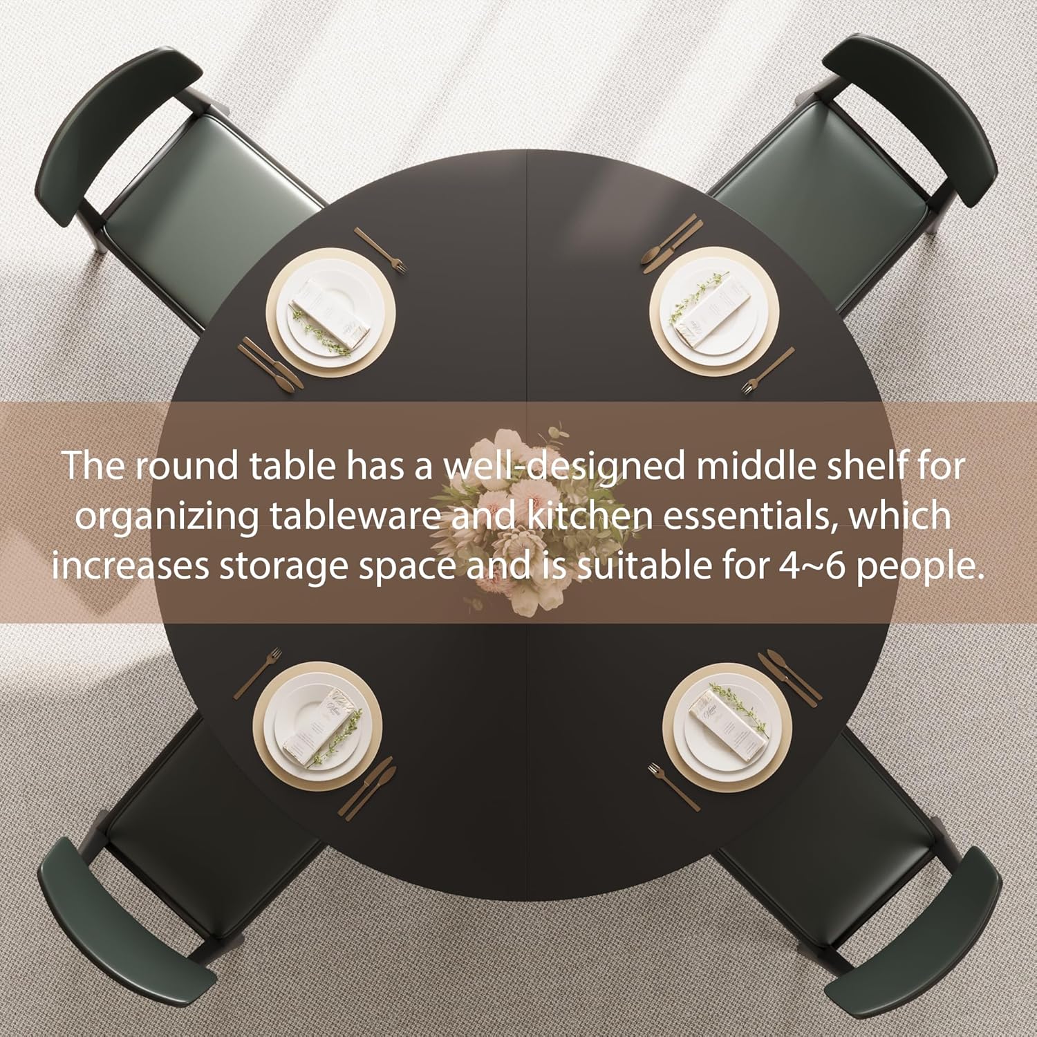 GarveeHome Round Dining Table for 4-6, 47.2" Farmhouse Kitchen Table with Storage, Circle Dinner Tables for Kitchen, Dining Room, Living Room, Meeting Room, Apartment, Black