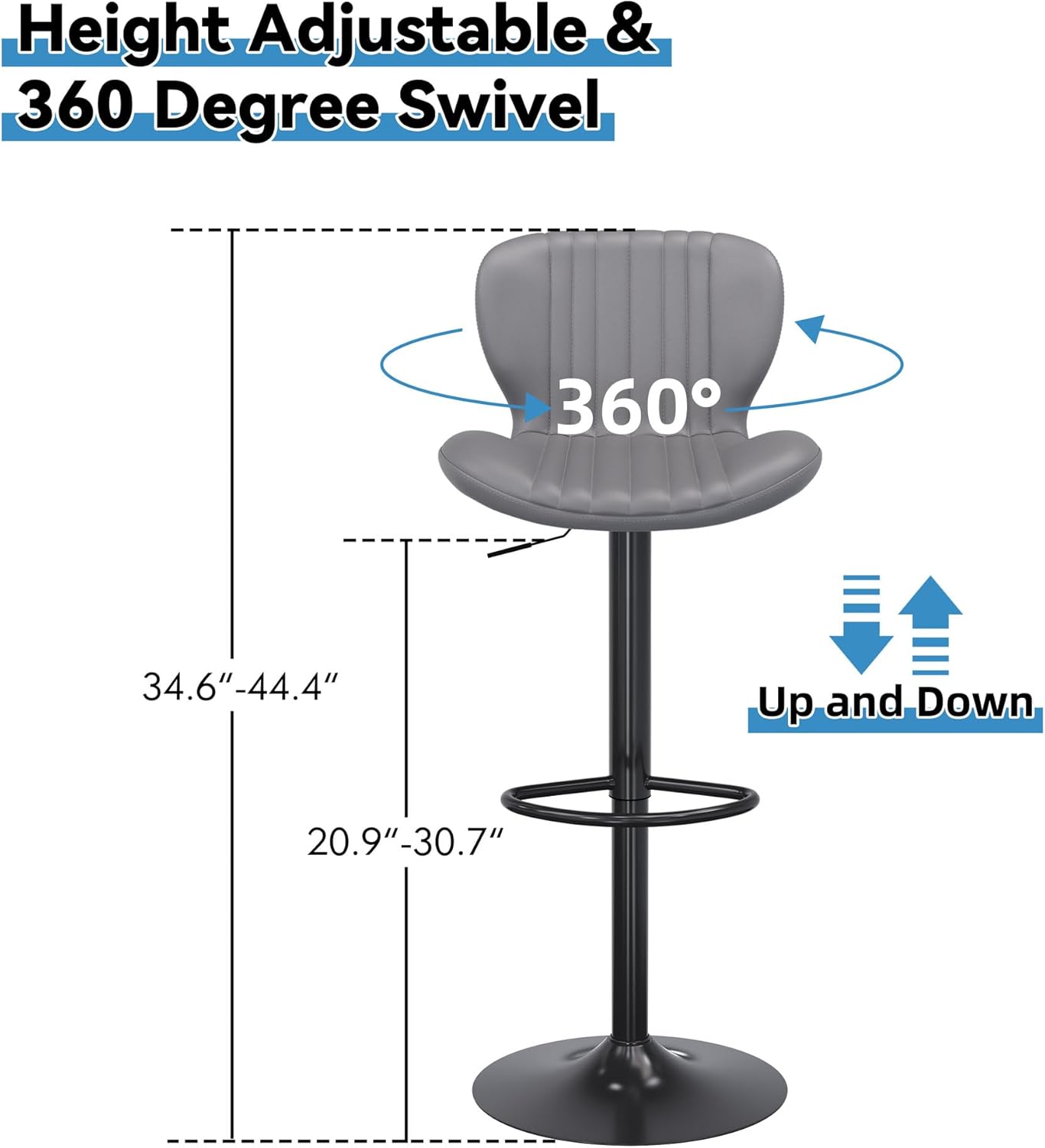 - 360° Rotation and Height Adjustable: The swivel bar stool set is height adjustable to fit people of different heights. And the 360° rotation design allows you to engage in enjoyable face-to-face conversation.