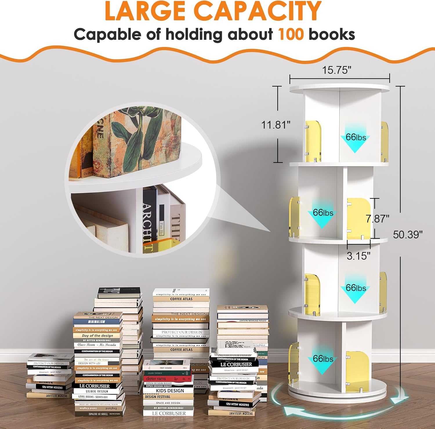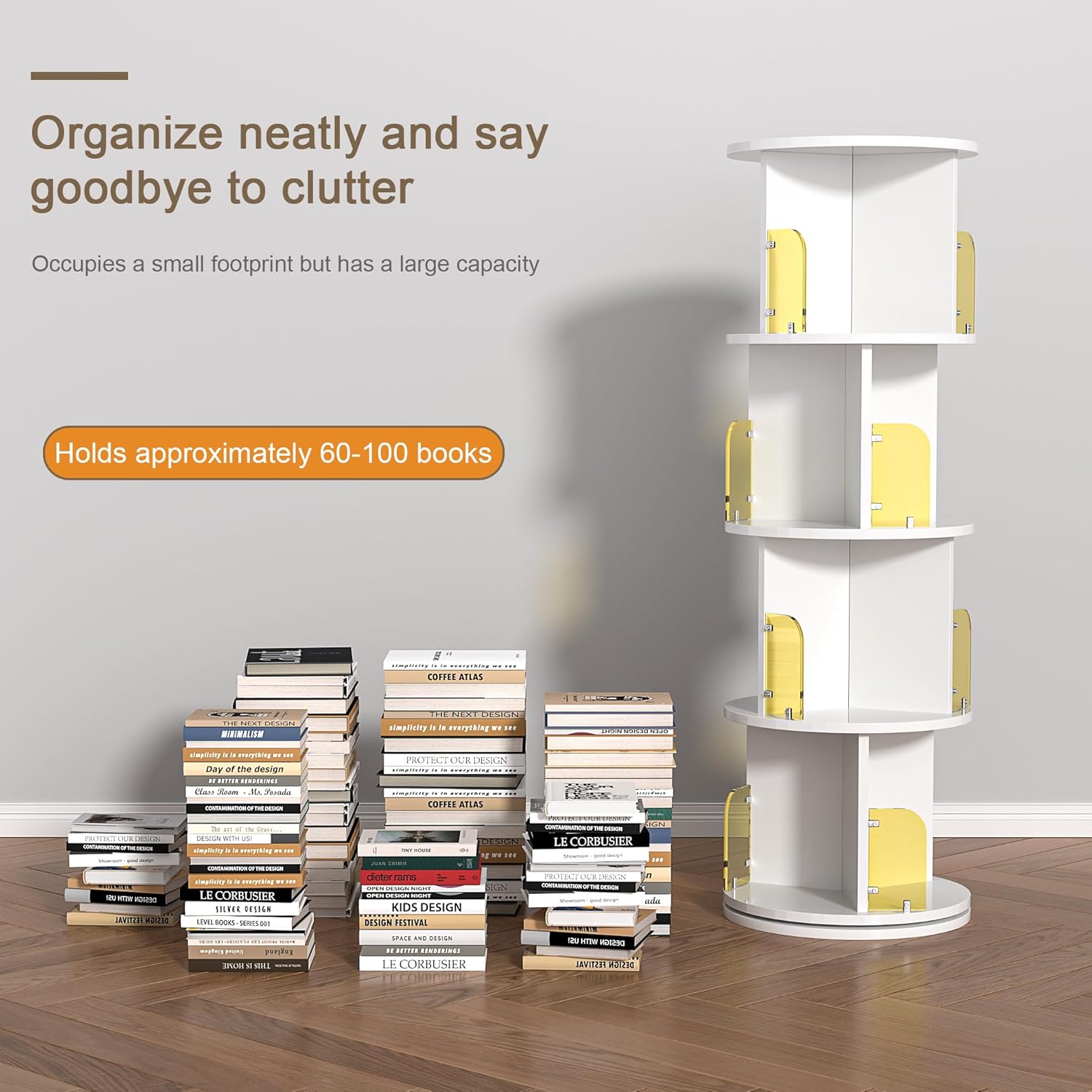 - 【Flexible Use】: You can DIY the bookshelf into a short bookshelf with 3 Tiers, 2 Tiers or 1 Tier, perfect for storing magazine albums or other favorite collectibles in your living room, children's room, den, playroom, bedroom or office. Rotates 360° for easy access from any angle. Perfect for decorating, organizing and storing your belongings while staying neat and organized.