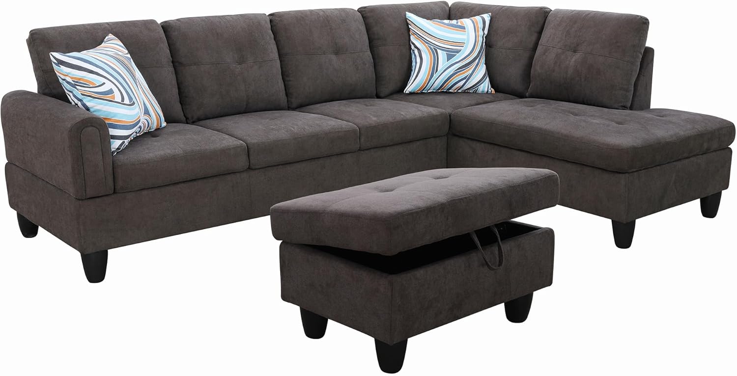 - Versatile and Practical Design: The chaise lounge setup allows for flexibility in your seating arrangement, enabling you to adjust the sofa to fit your space. The included storage ottoman adds functionality, offering a handy way to keep your living area neat and orderly.