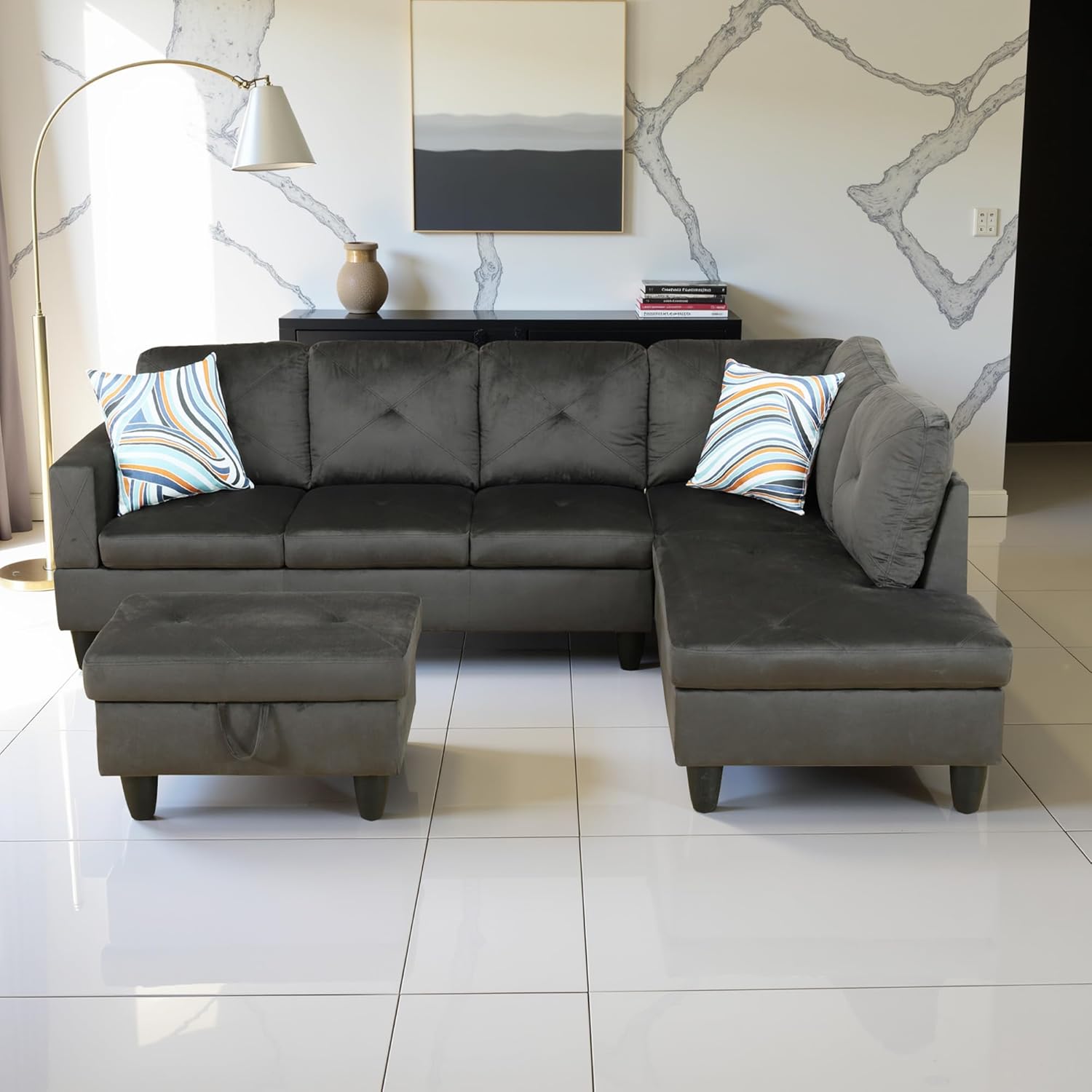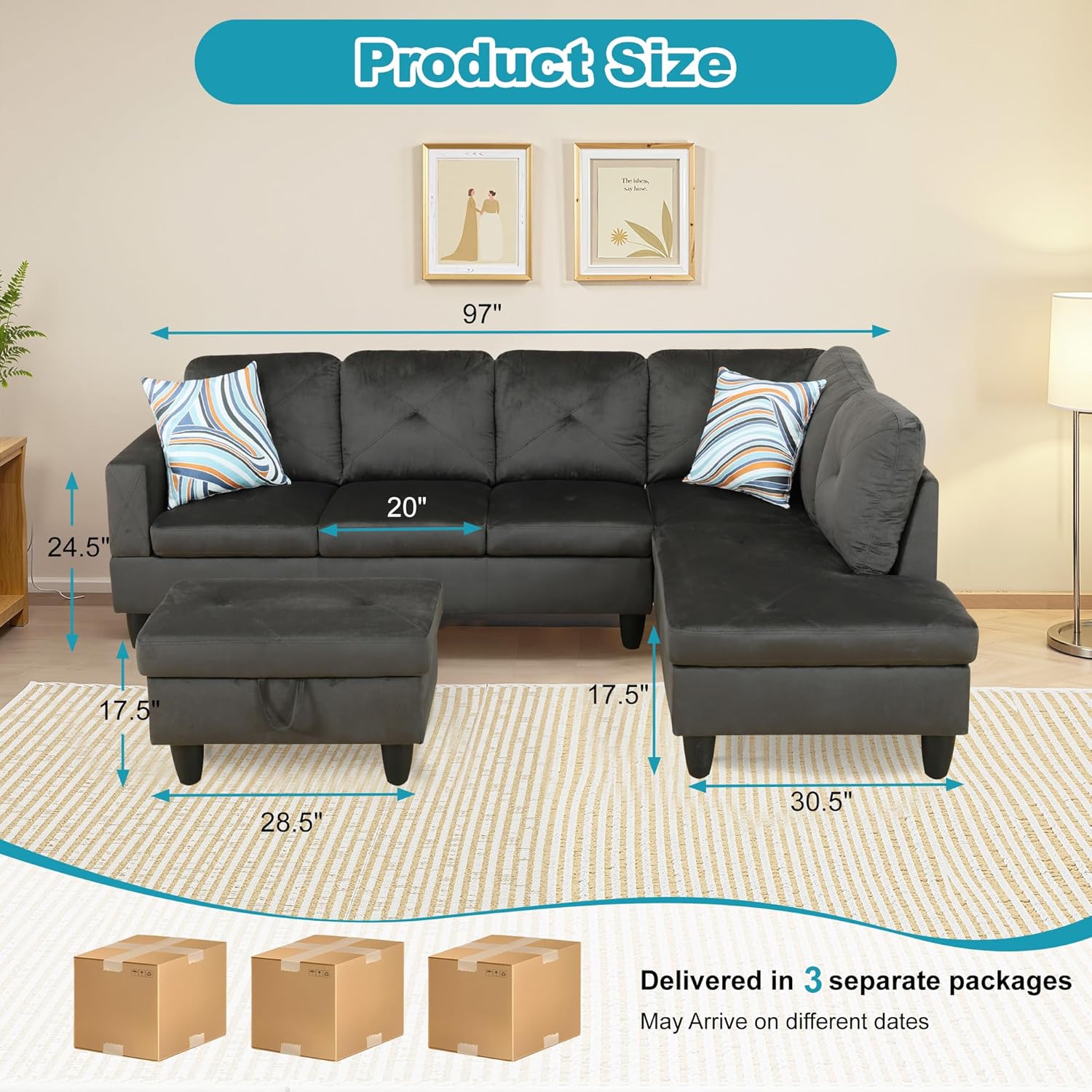 - Versatile and Practical Design: The chaise lounge setup allows for flexibility in your seating arrangement, enabling you to adjust the sofa to fit your space. The included storage ottoman adds functionality, offering a handy way to keep your living area neat and orderly.