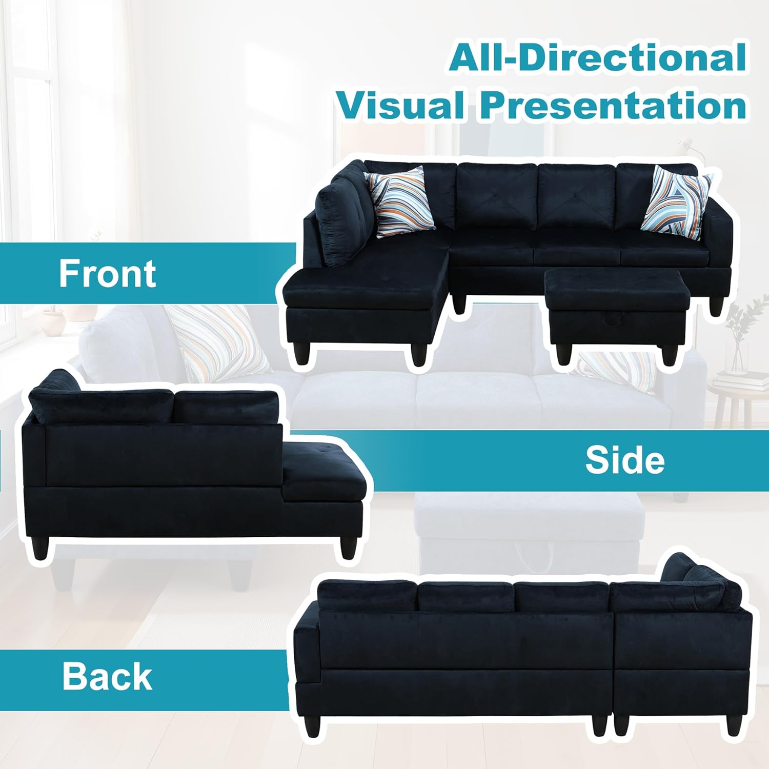 - Versatile and Practical Design: The chaise lounge setup allows for flexibility in your seating arrangement, enabling you to adjust the sofa to fit your space. The included storage ottoman adds functionality, offering a handy way to keep your living area neat and orderly.