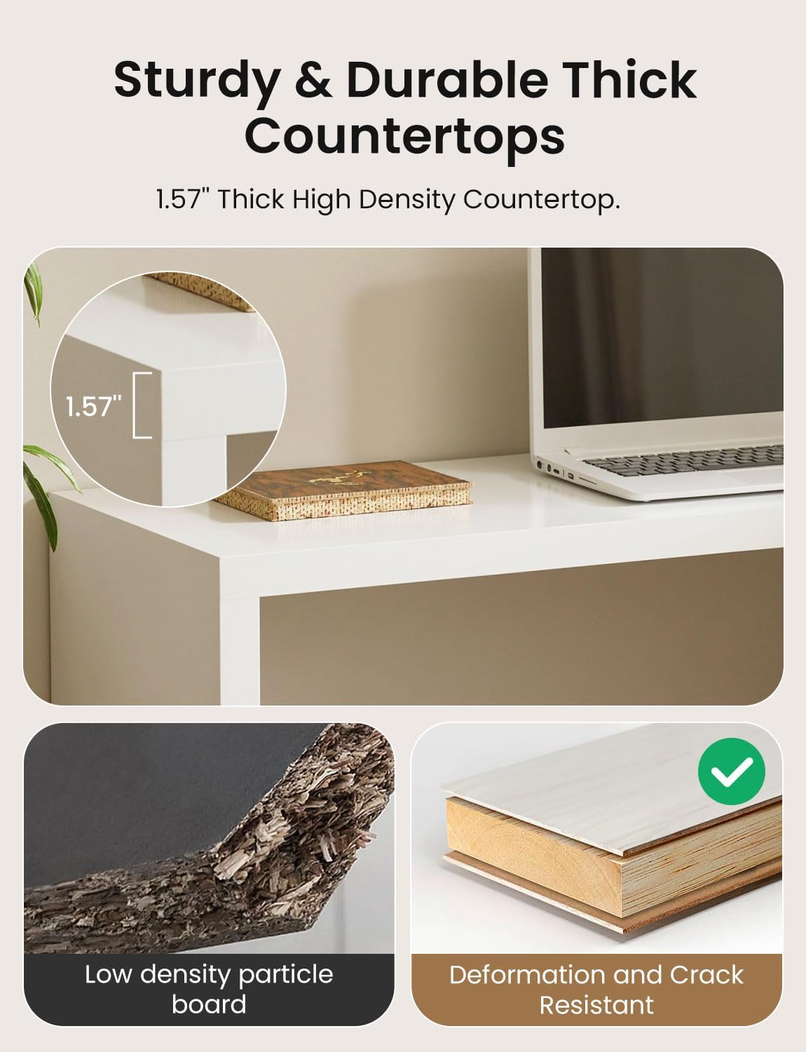 - Premium 1.57" Thick Countertop – The 55.12" long dresser features an ultra-sturdy MDF surface that resists warping and supports up to 170 lbs, ensuring durability for daily use as a makeup vanity or workspace.