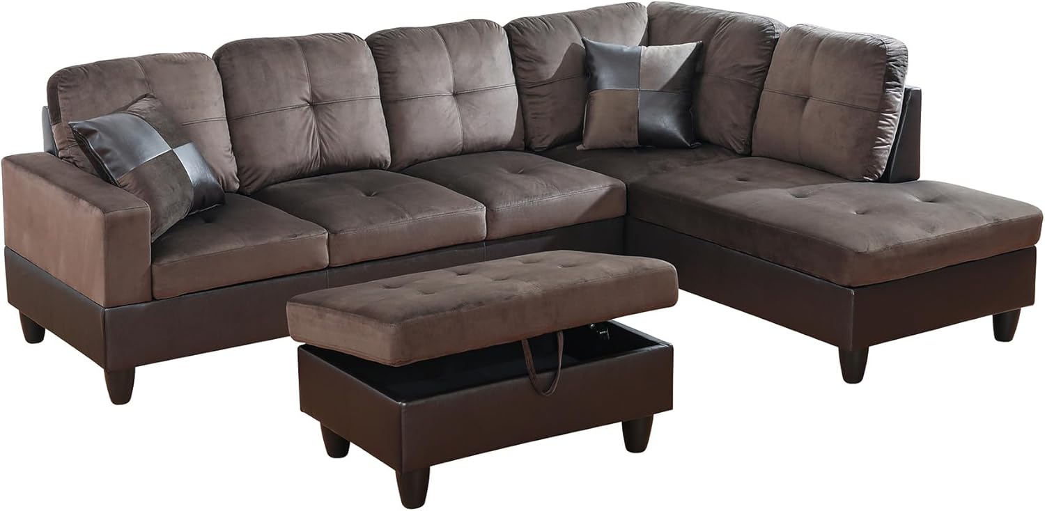 - Versatile and Practical Design: The chaise lounge setup allows for flexibility in your seating arrangement, enabling you to adjust the sofa to fit your space. The included storage ottoman adds functionality, offering a handy way to keep your living area neat and orderly.