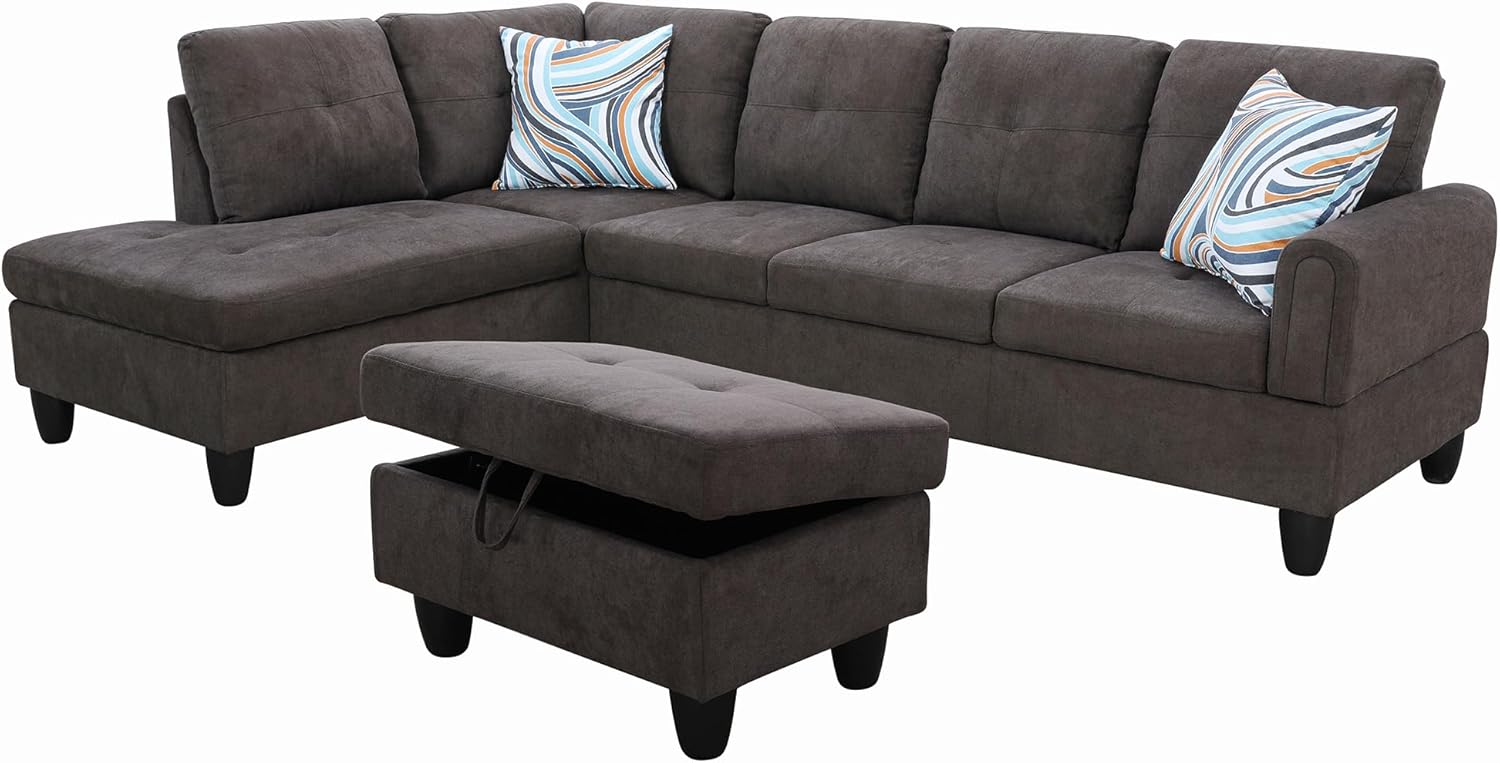 - Versatile and Practical Design: The chaise lounge setup allows for flexibility in your seating arrangement, enabling you to adjust the sofa to fit your space. The included storage ottoman adds functionality, offering a handy way to keep your living area neat and orderly.
