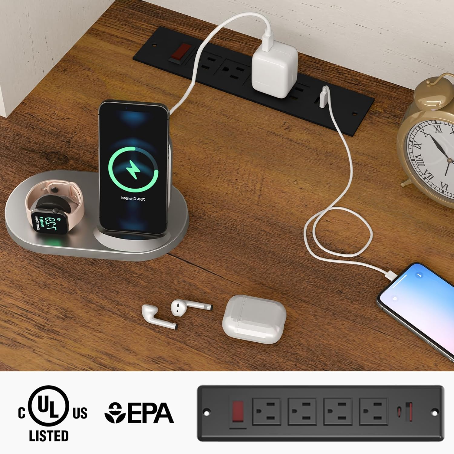 - 【Convenient Charging Station】Our charging hub boasts 4 outlets and 2 USB ports, facilitating simultaneous power provision for up to 6 devices. Equipped with an on-off switch, it ensures safe electricity usage with the added convenience of one-button power-off functionality, thereby raising security. The power outlets support charging for various devices, including cell phones, tablets, and laptops.