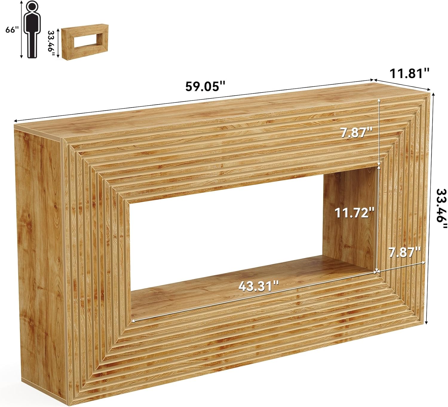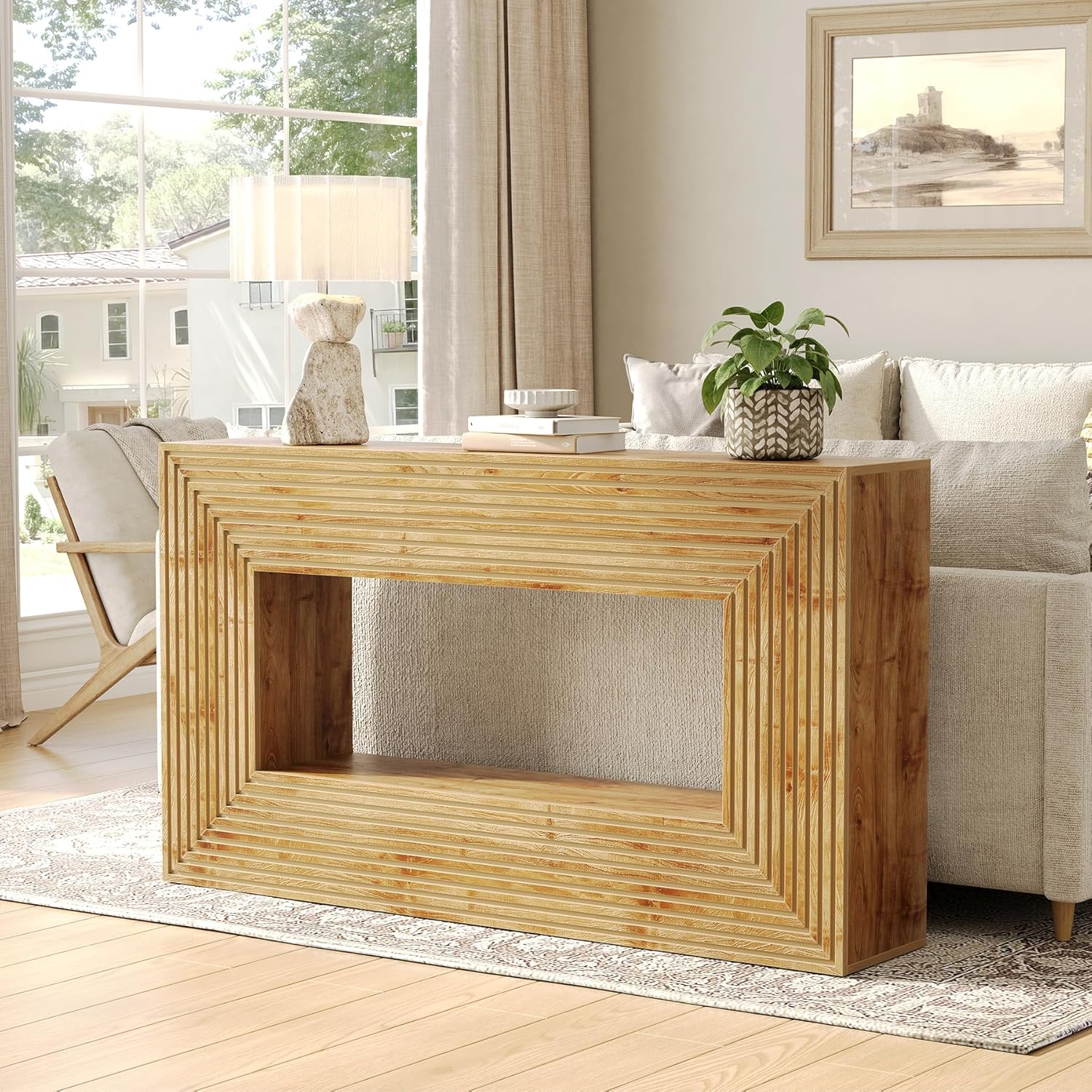 LITTLE TREE 59-Inch Console Table with Storage, 2-Tier Farmhouse Fluted Sofa Table Behind Couch, Large Narrow Entryway Furniture for Living Room, Foyer (Light Walnut)