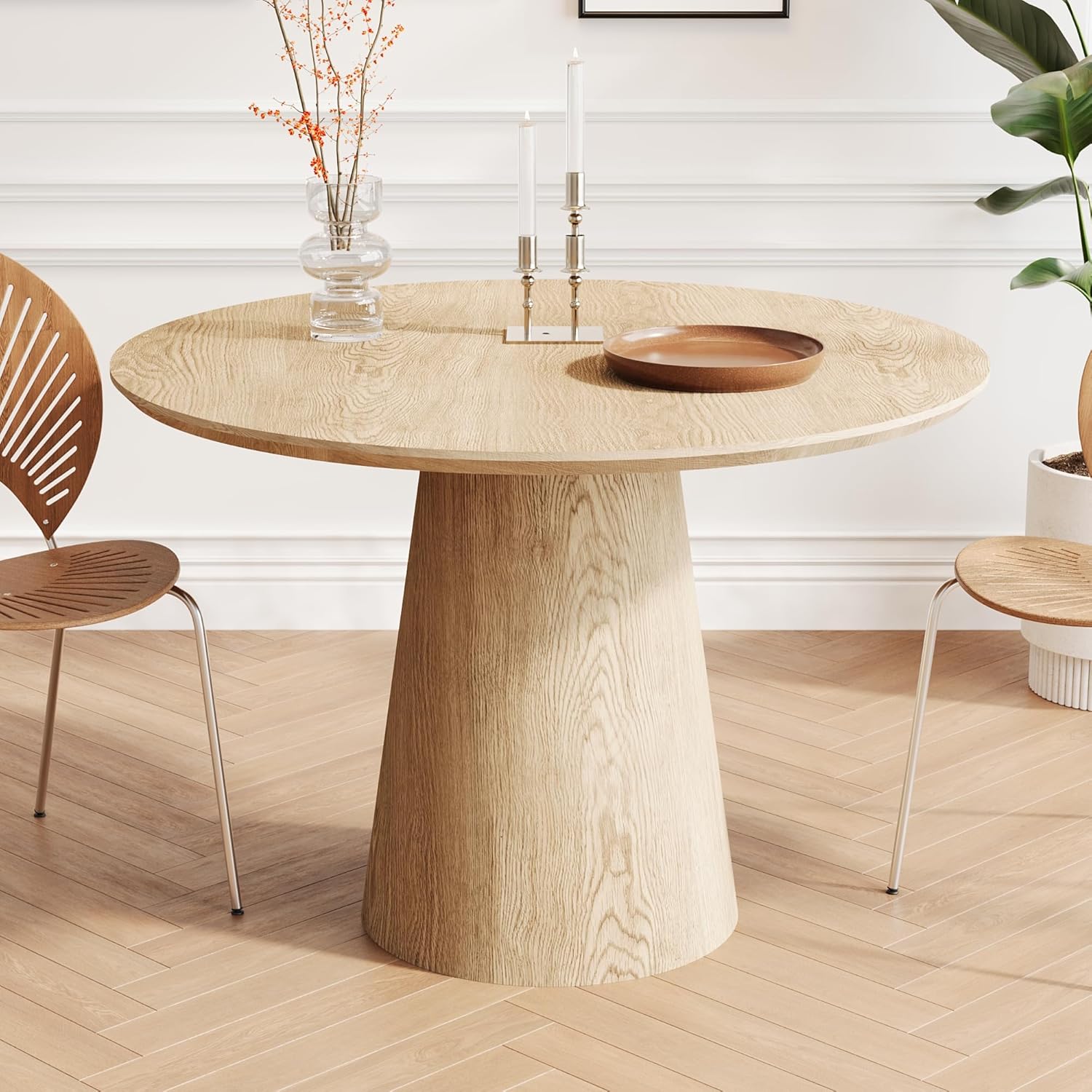 Round Dining Room Table for 4, 43'' Modern Farmhouse Kitchen Table with Round Pedestal, for Kitchen, Living Room, Cafe,Small Spaces, Apartment Wood