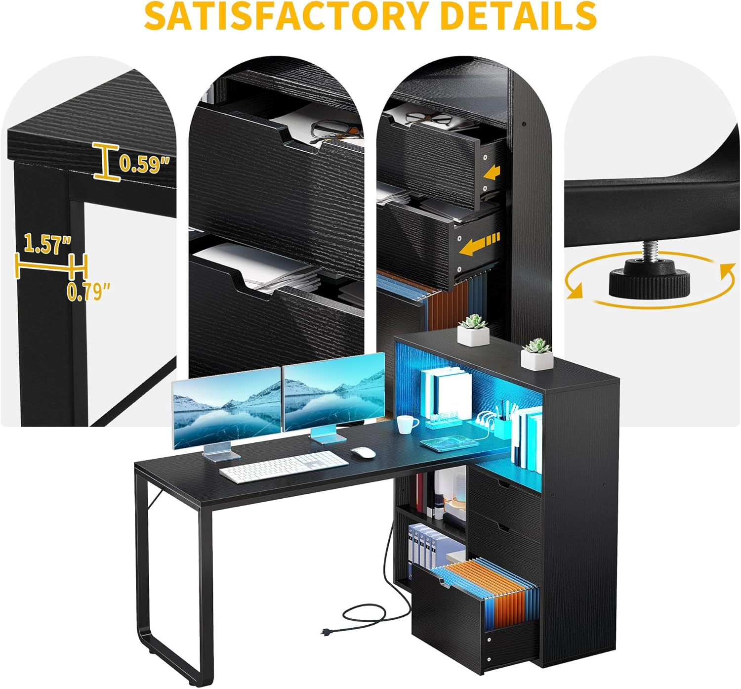 - Special Feature : With Power Outlets & LED Lights & File Drawer