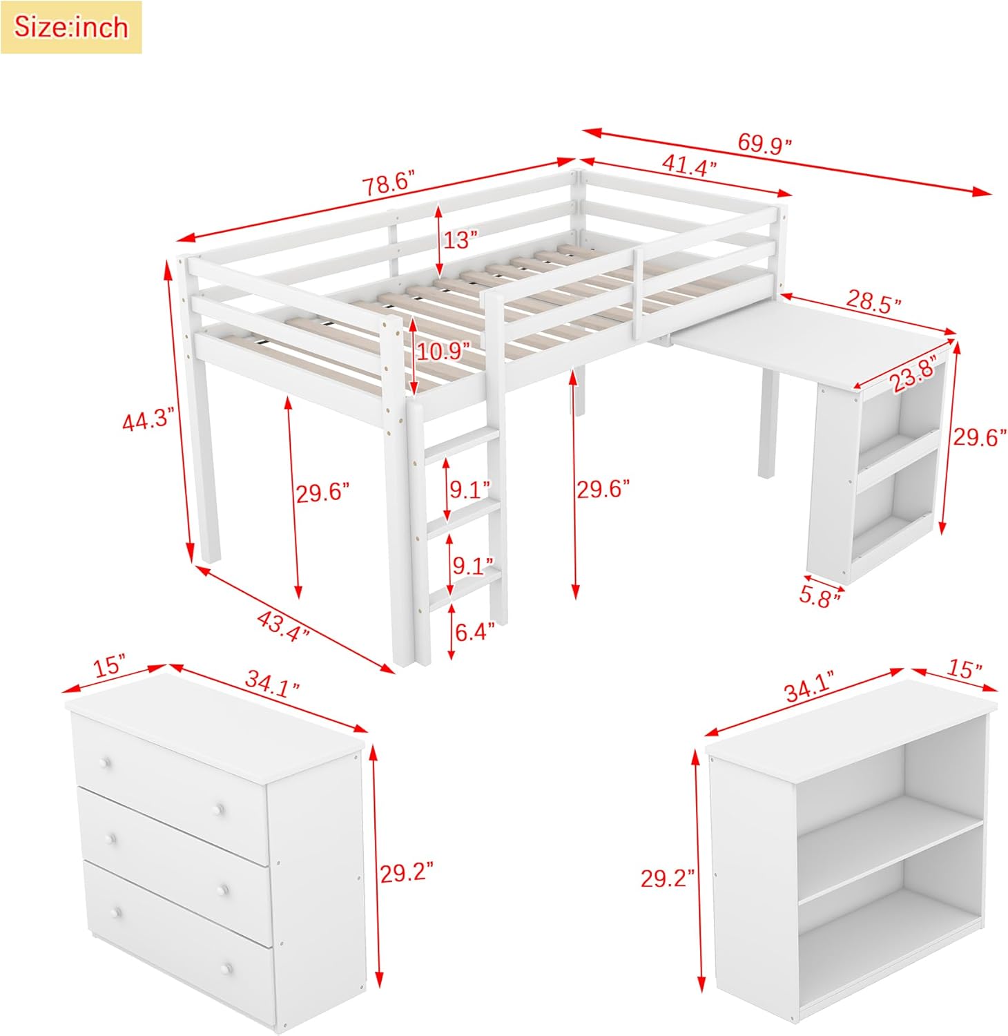- [Plenty and Flexible Under-Bed Storage Space] Cleverly designed storage cabinets provide ample space for toys, books, and other items. The three-drawer cabinet with smooth slides ensures organized storage, while the 2-tier shelf is perfect for books and easy access.