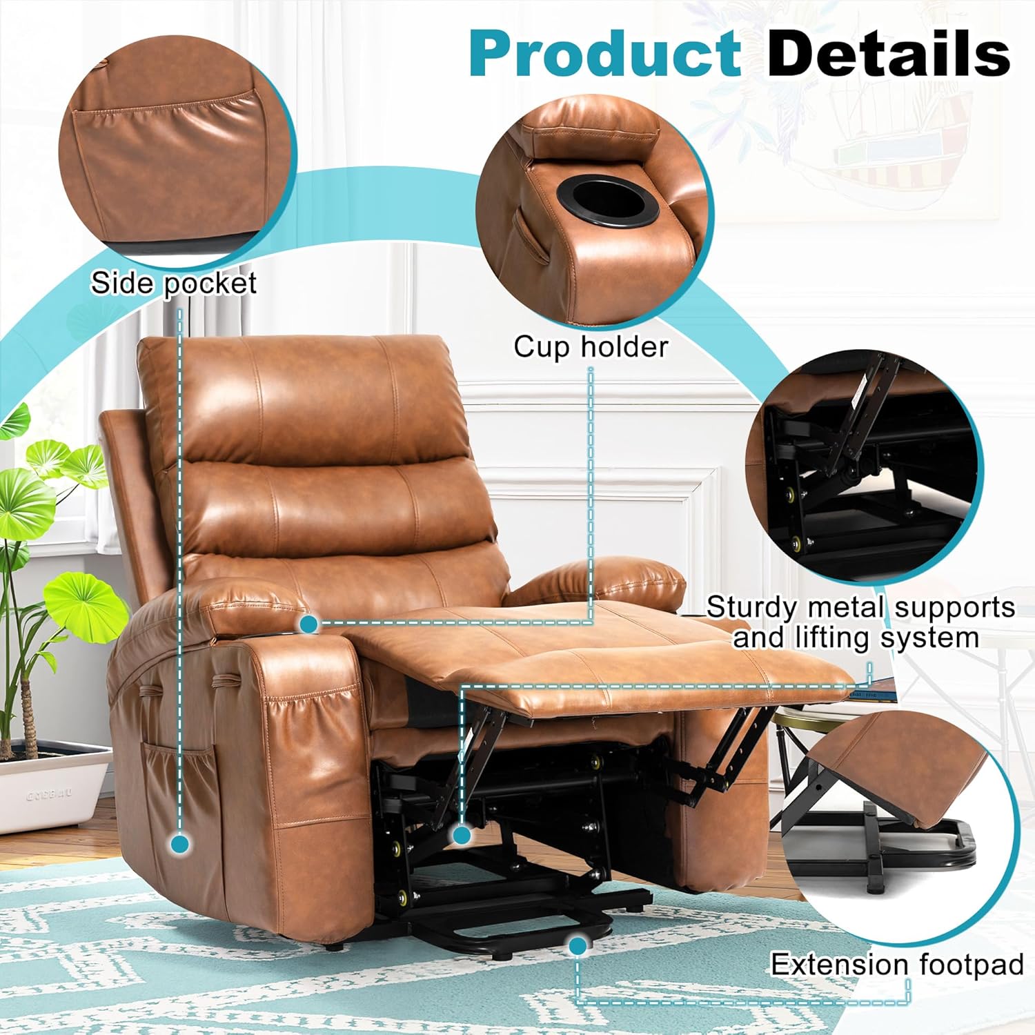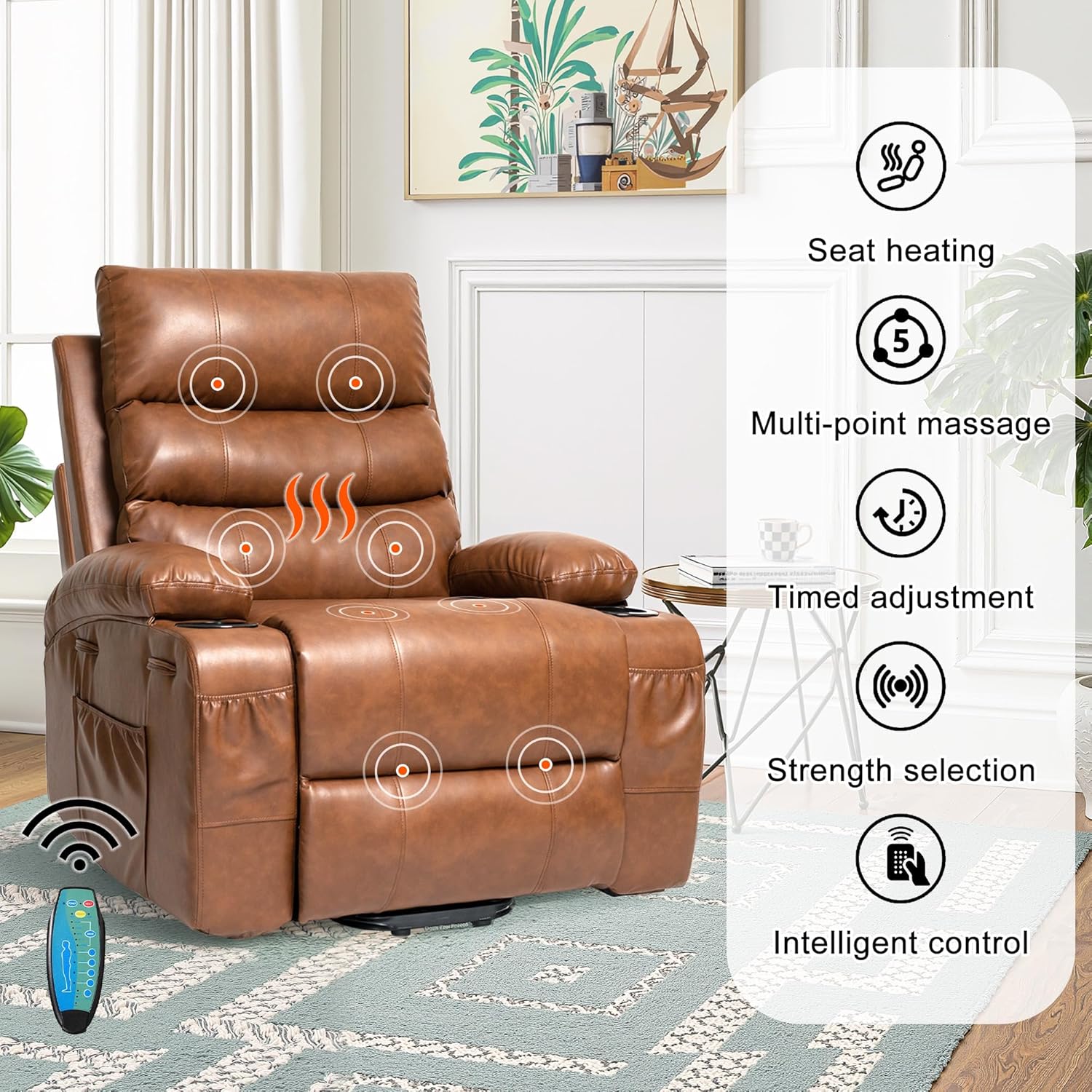 Recliner Chair Power Lift Massage Chair Full Body 21" Large Size Electric Recliner with 8 Point Vibration Massage and Lumber Heat, Remote Control, Side Pockets and Cup Holders, Brown