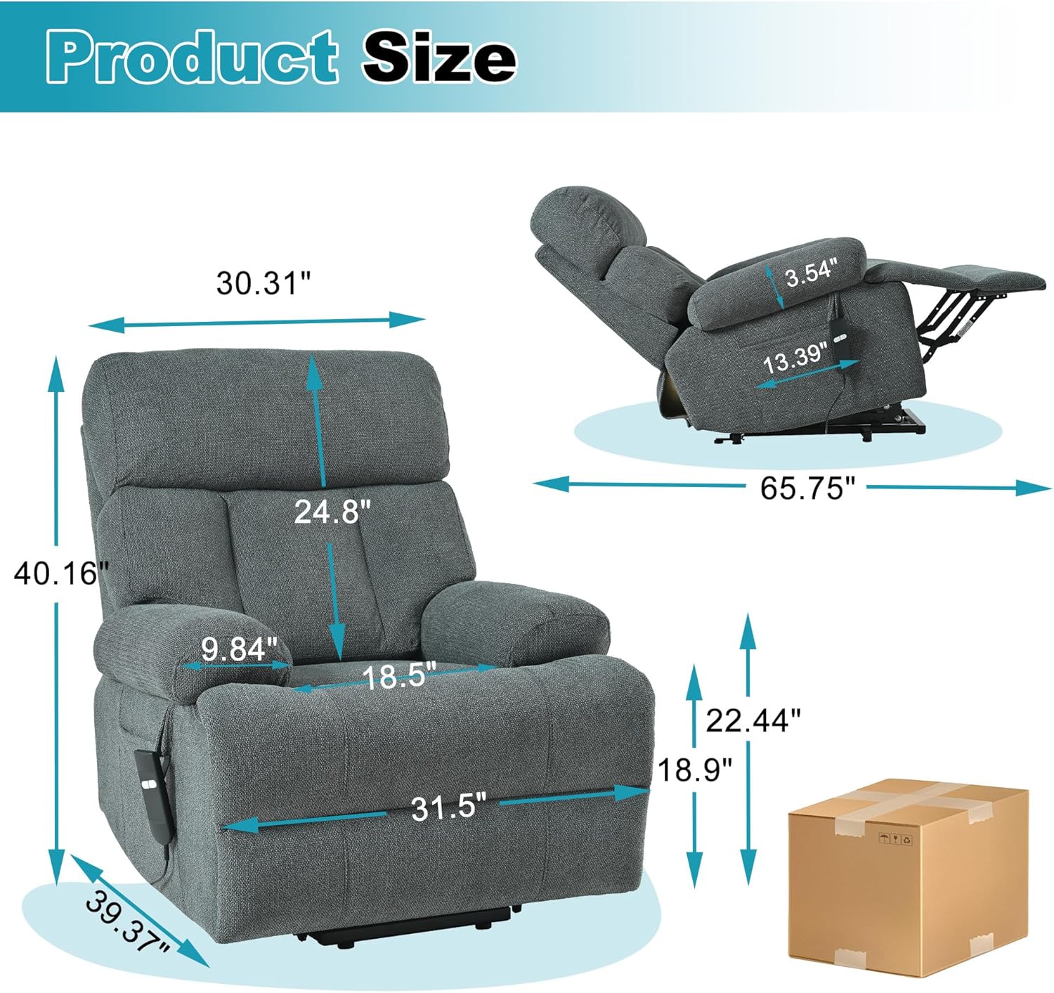 - Powered Recliner: Equipped with an electric motor, getting up and out of bed is effortless! With the push of a button on the remote, the recliner smoothly and quietly raises and lowers, tilting without straining your back or knees, allowing you to stand up effortlessly. The angle can be adjusted to your heart's content, allowing you to relax or watch TV comfortably. The footrest is also retractable, allowing you to stretch out as you please