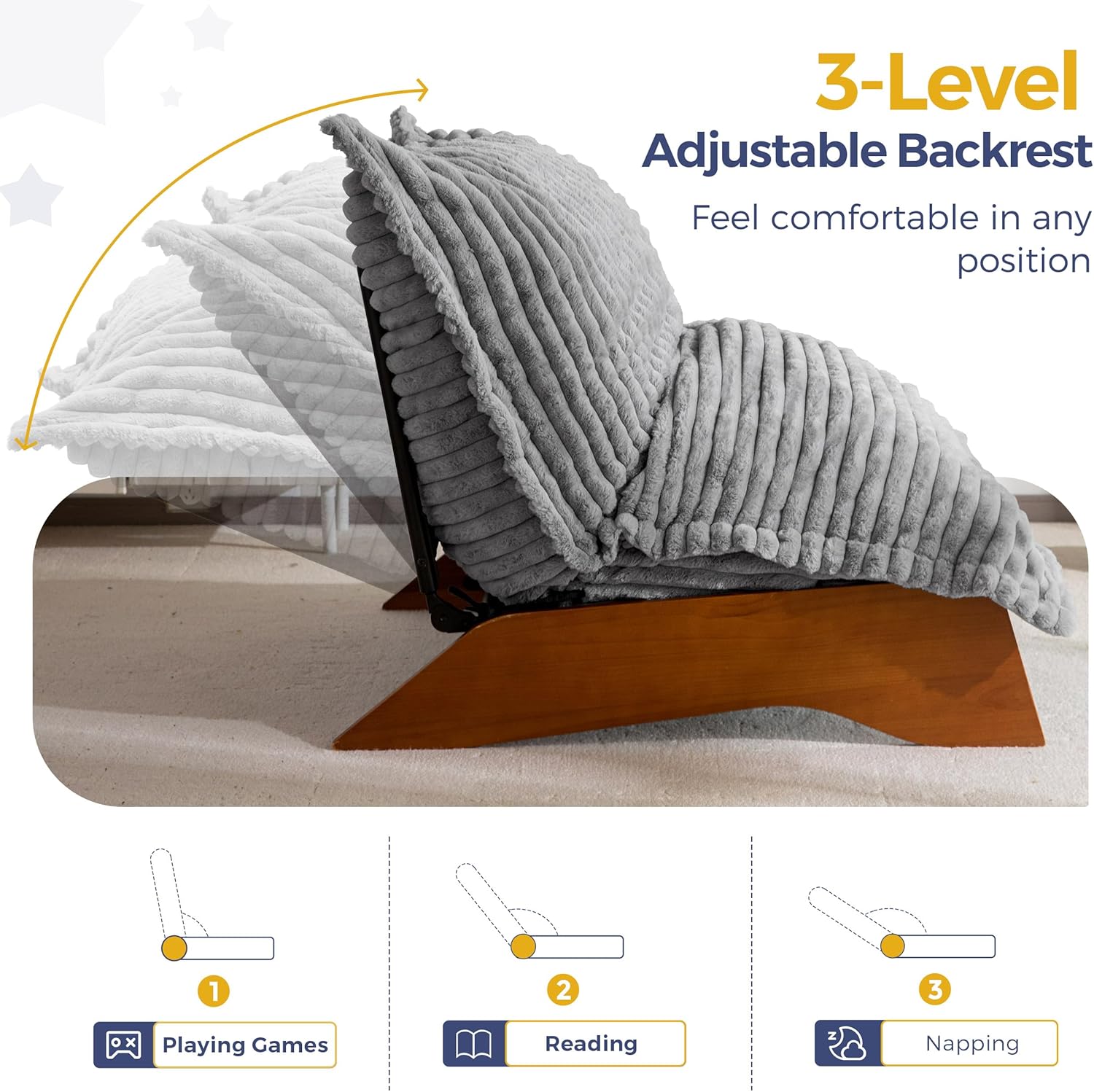 MAXYOYO Adjustable Living Room Chair, 3-Position Bean Bag Chair with Removable Cover, Upholstered Accent Chair with Frame, Soft Reclining Lounge for Bedroom, Apartment, Office, Grey