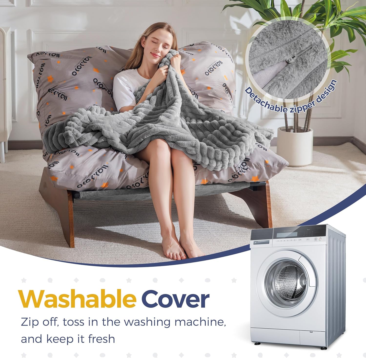 - Soft & Washable Cover: Wrapped in ultra-soft faux fur fabric, it provides a comfortable and cozy touch. The removable cover is machine-washable, ensuring your chair remains clean, tidy, and easy to maintain