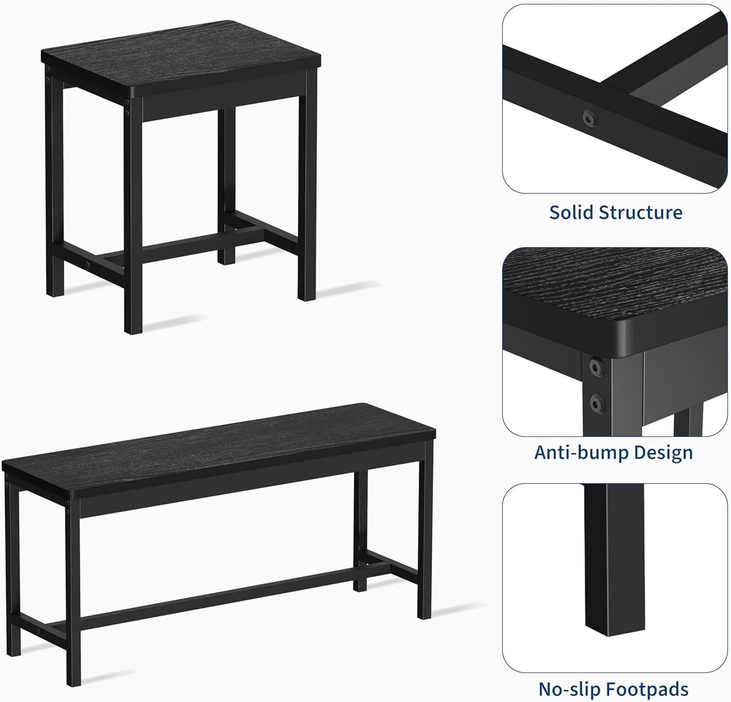 - Compact Kitchen Table with Hidden Storage: Tuck stools and benches neatly under the table to save space. Perfect as a kitchen table or dining room table set for 4, it keeps your home clutter-free while ready to host friends and family