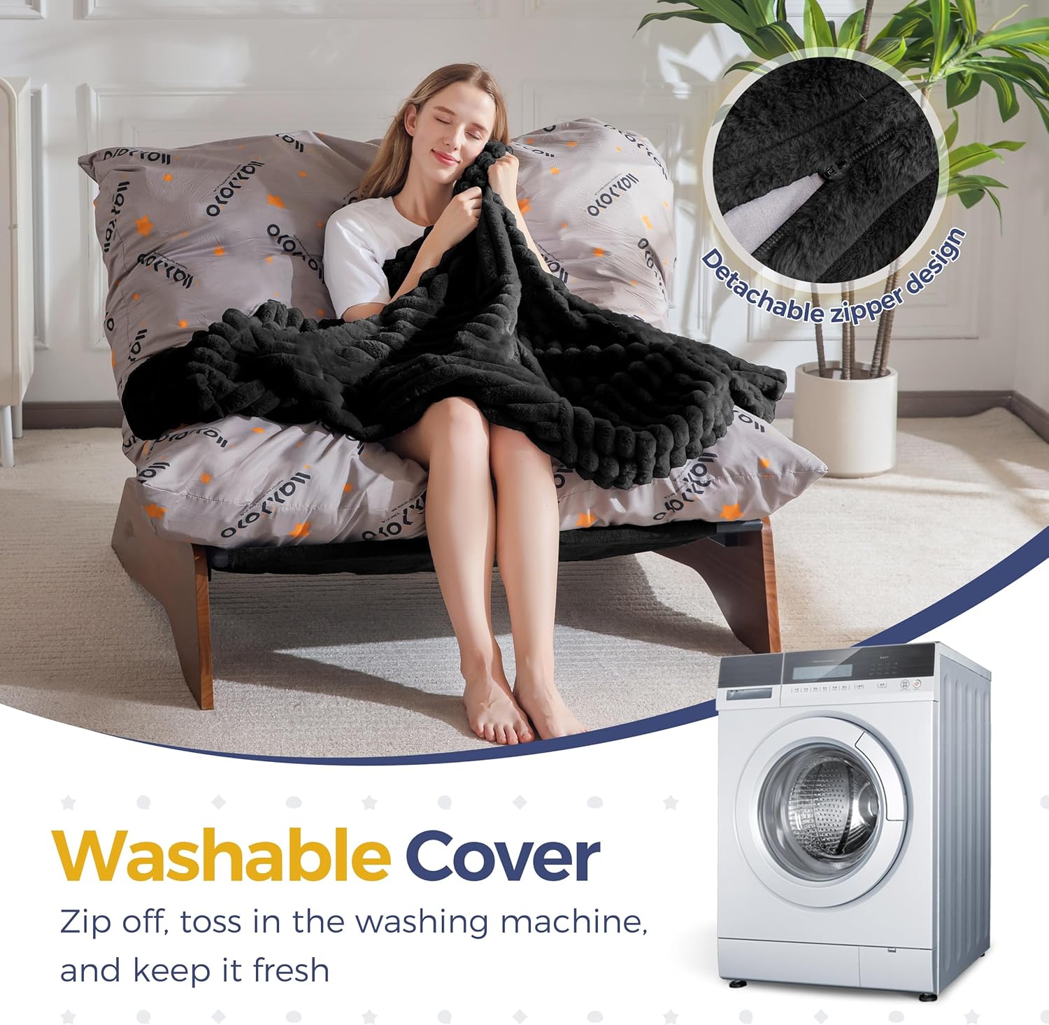 - Soft & Washable Cover: Wrapped in ultra-soft faux fur fabric, it provides a comfortable and cozy touch. The removable cover is machine-washable, ensuring your chair remains clean, tidy, and easy to maintain