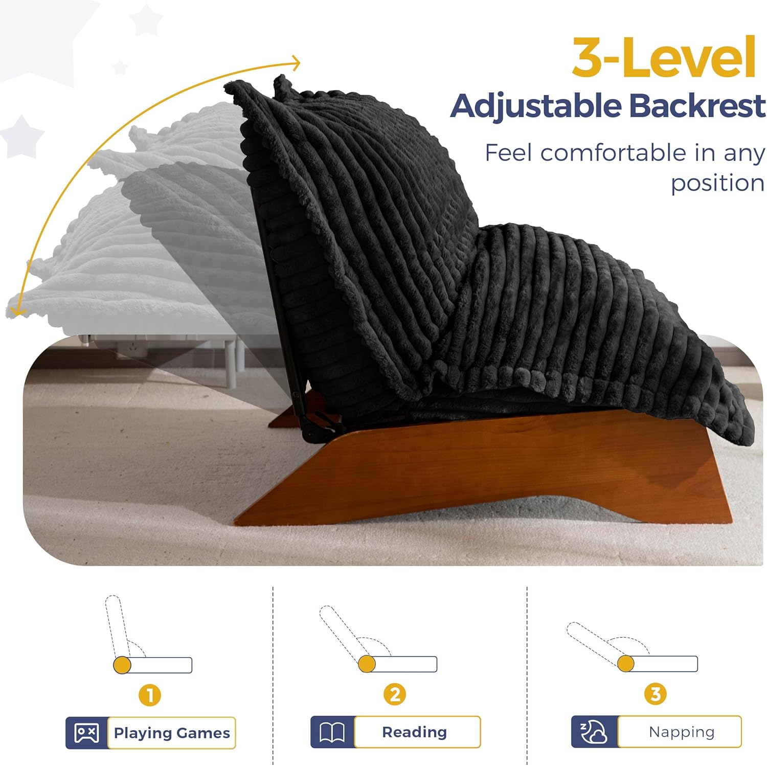 MAXYOYO Adjustable Living Room Chair, 3-Position Bean Bag Chair with Removable Cover, Upholstered Accent Chair with Frame, Soft Reclining Lounge for Bedroom, Apartment, Office, Black