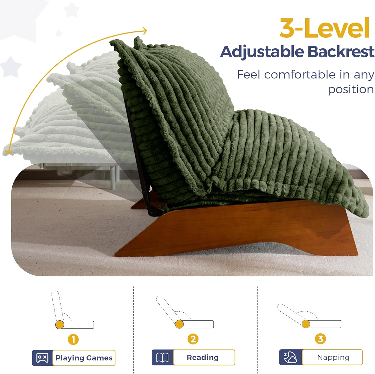 MAXYOYO Adjustable Living Room Chair, 3-Position Bean Bag Chair with Removable Cover, Upholstered Accent Chair with Frame, Soft Reclining Lounge for Bedroom, Apartment, Office, Green