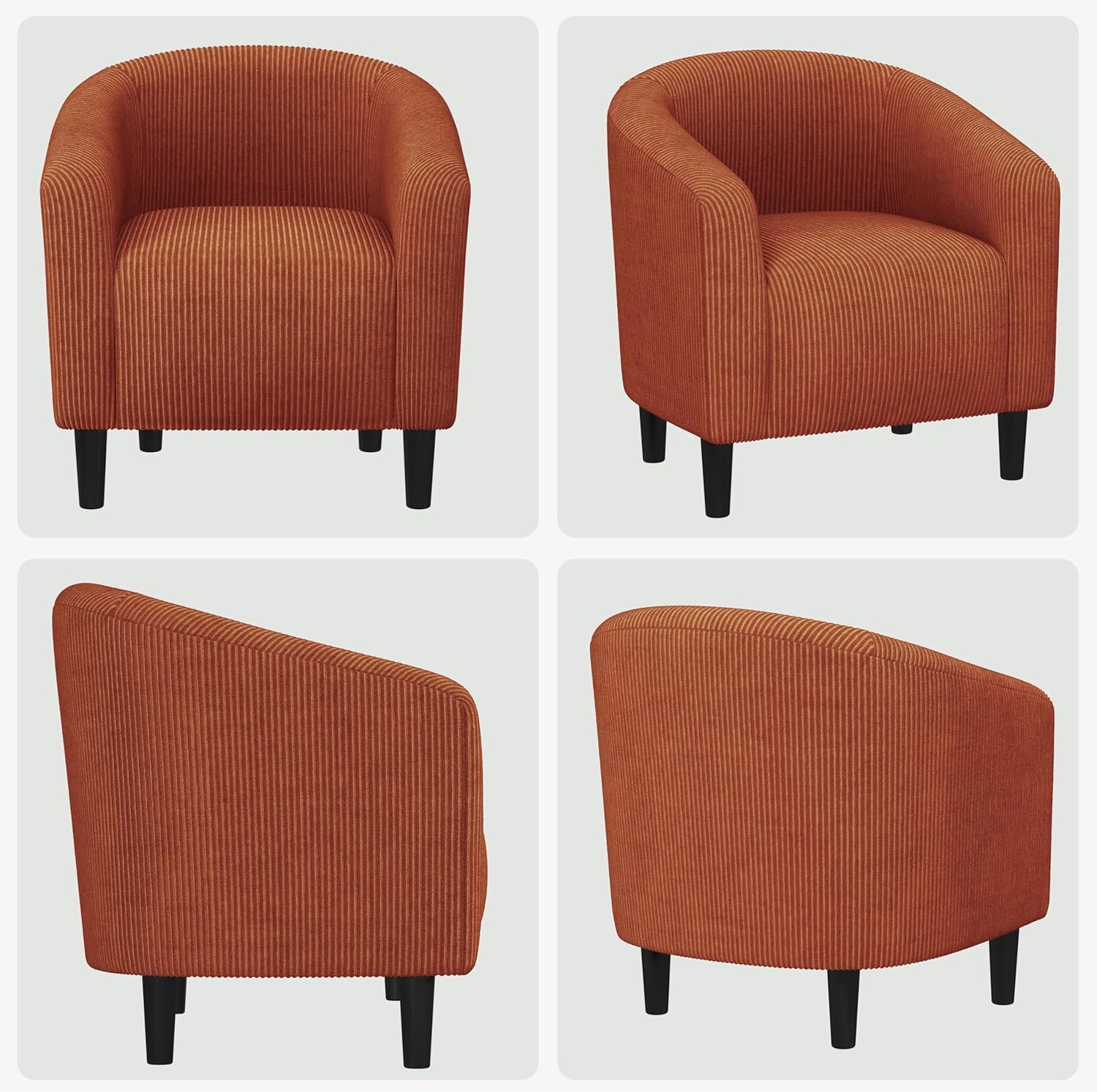 - Effortlessly Style Up Your Room: The curved frame, tapered legs, and retro corduroy fabric make this accent chair a statement for Scandinavian. Measuring just 28″ W x 26″ D x 29″ H, this compact accent chair fits easily in narrow nooks and small spaces