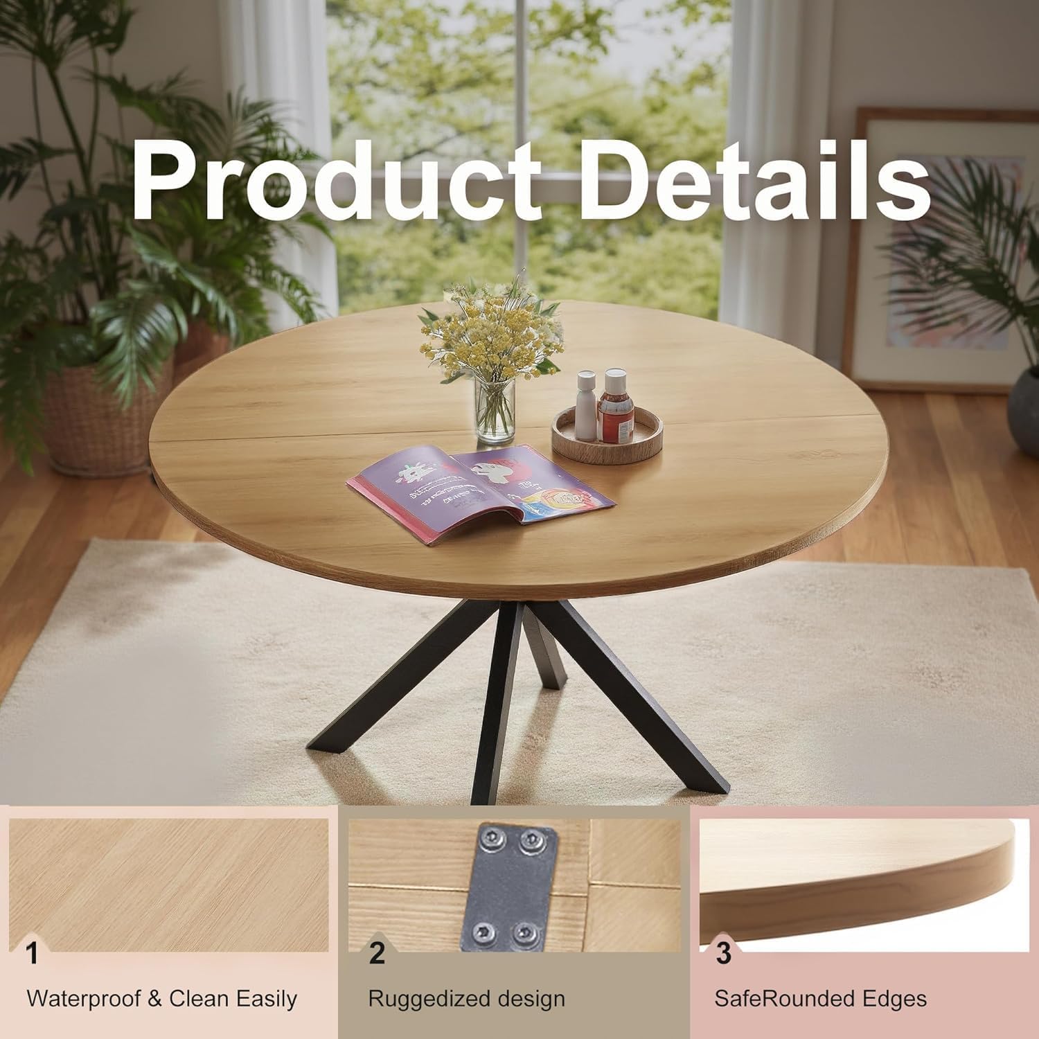 - Round Dining Table for 4-6: The round dining table maximizes the usable area of the dining table. The 47-inch size provides ample space for placing tableware, decorative plants, desserts, and can be used as a round kitchen table, coffee table, or end table. It can comfortably accommodate 4 to 6 people.
