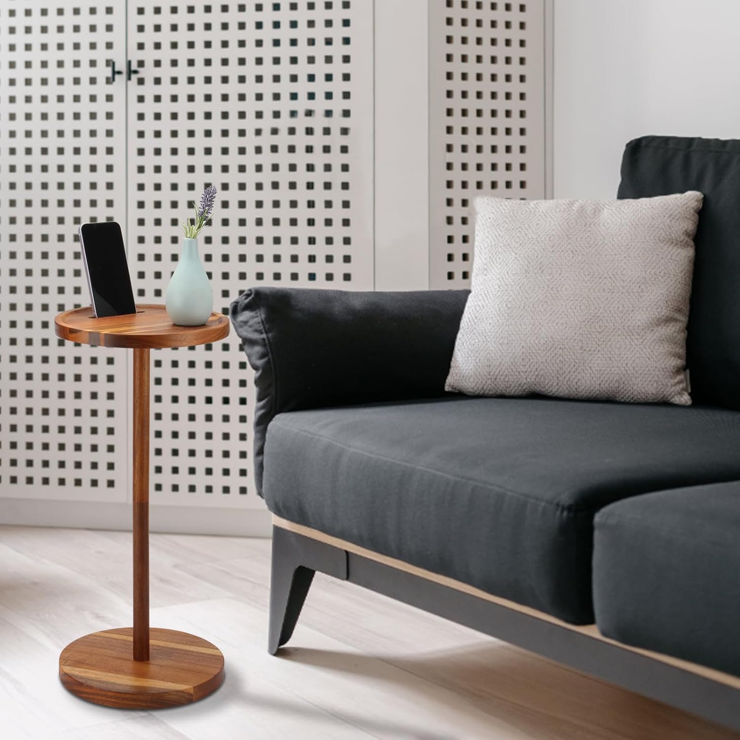 Acrylic Drink End Table, Clear Drink Table for Small Spaces with Anti-Slip Pads, 9.8" Round Modern Side Coffee Table for Living Room/Bedroom/Bathroom/Office/Outdoor/Business (Wood, Brown)