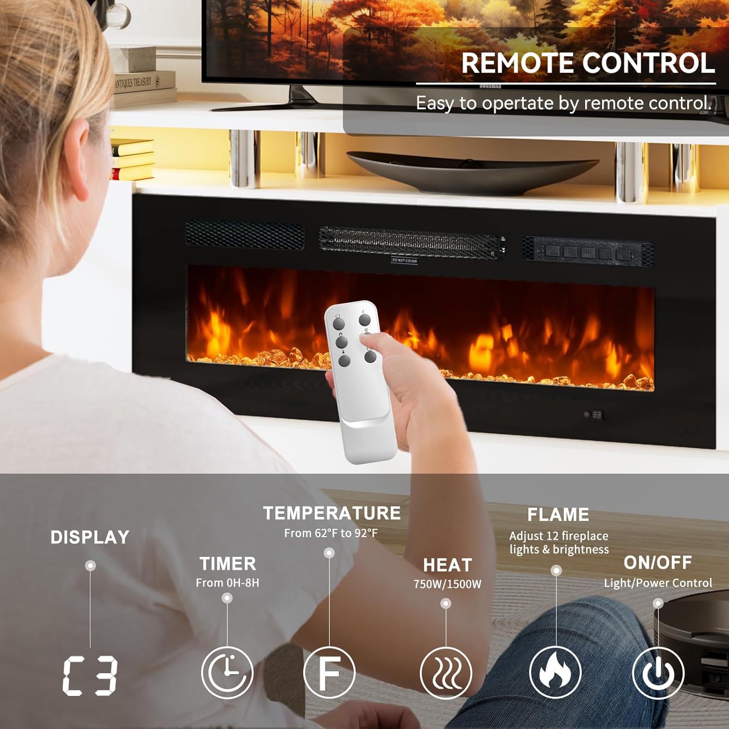 - Safe & Energy-Efficient Fireplace: Adjustable temp range (62-82°F) with overheat protection & auto shut-off timer, CSA&ETL certified