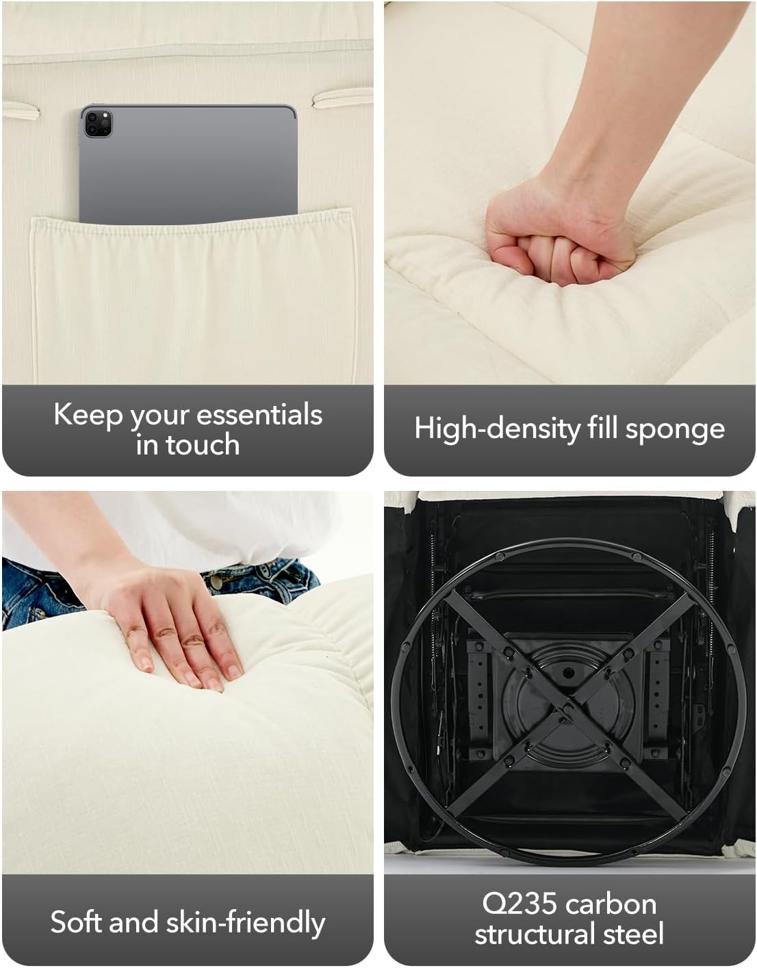 Rocking Recliner Chair,360° Swivel Rocker Chair for Living Room,Upholstered Fabric Glider Nursery Chair with Side Pockets for Small Spaces,Q235 Steel Frame Lazy Boy Recliner Single Sofa(Beige)