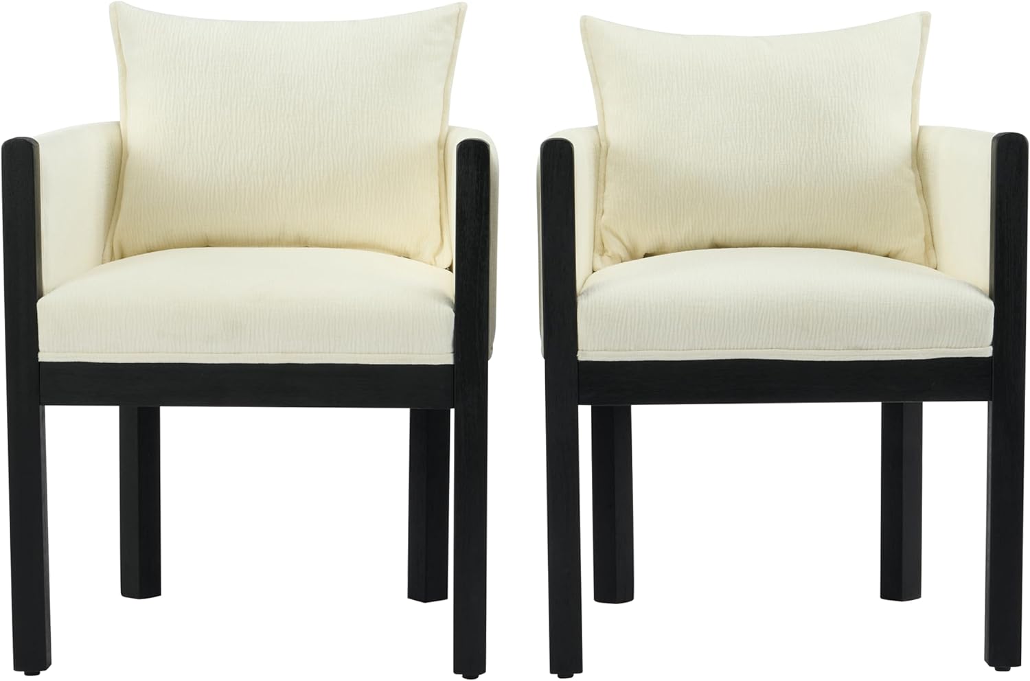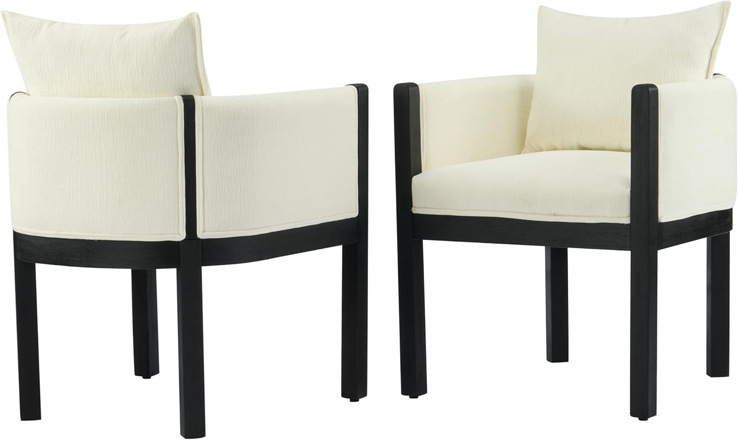 - Modern Armchair: Combining a clean-lined silhouette with bold contrast between the white upholstery and black wood frame, this armchair delivers a refined modern look. The armrests enhance both comfort and style. Its sleek design works beautifully in open-plan spaces, dining rooms, or as an accent piece in living areas