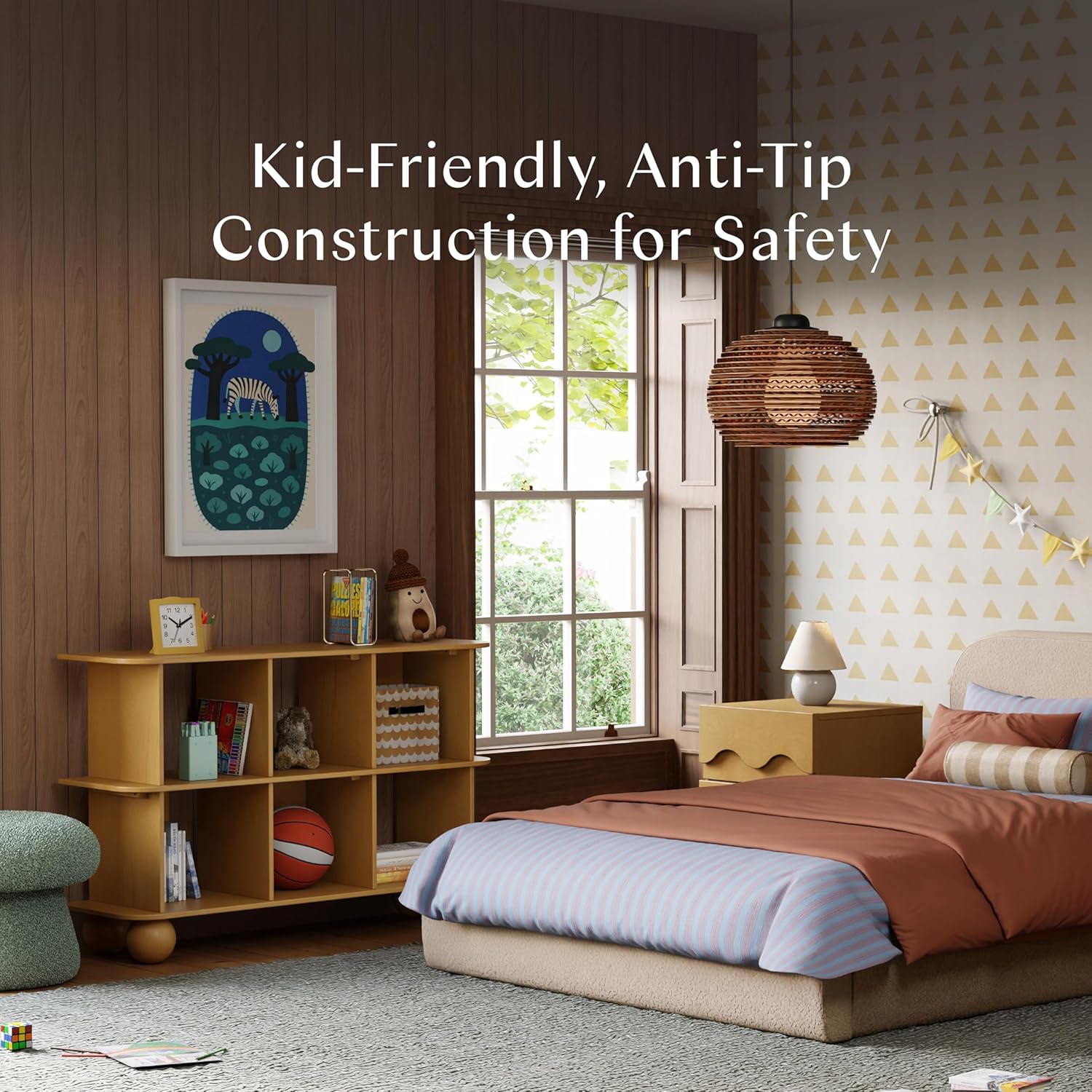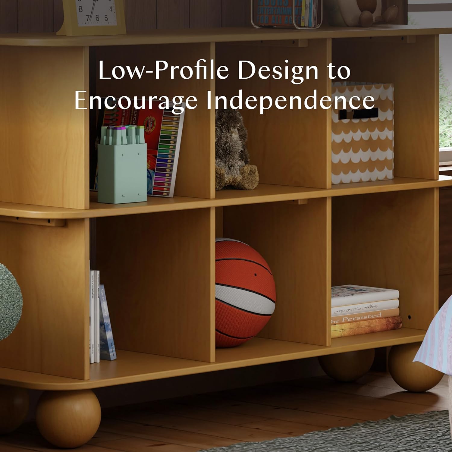 Babyletto Crosby Assembled Open Bookcase Kids Book Case w/Wide 6-Cube Montessori Wooden Book Shelves for Bedroom/Playroom/Living Room/Office - Modern Wood Bookshelf - Honey