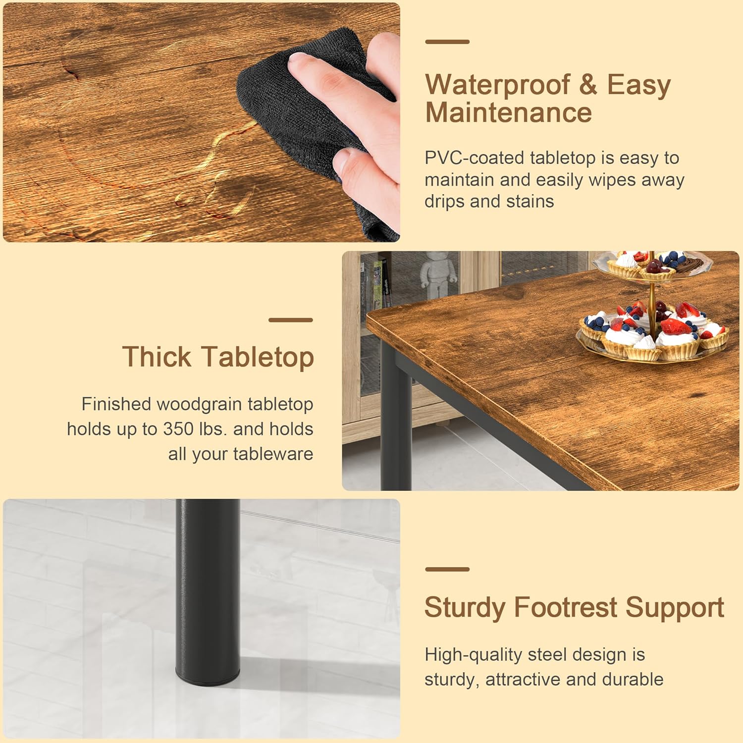 - 【Sturdy and Durable】-The table and chairs set of 4 is made of thickened wood and metal frame to ensure durability. The wooden table top and black painted frame are made from high quality materials that are waterproof, scratch resistant and easy to clean. In addition, the footrest support bar under the seat provides extra stability and comfort.