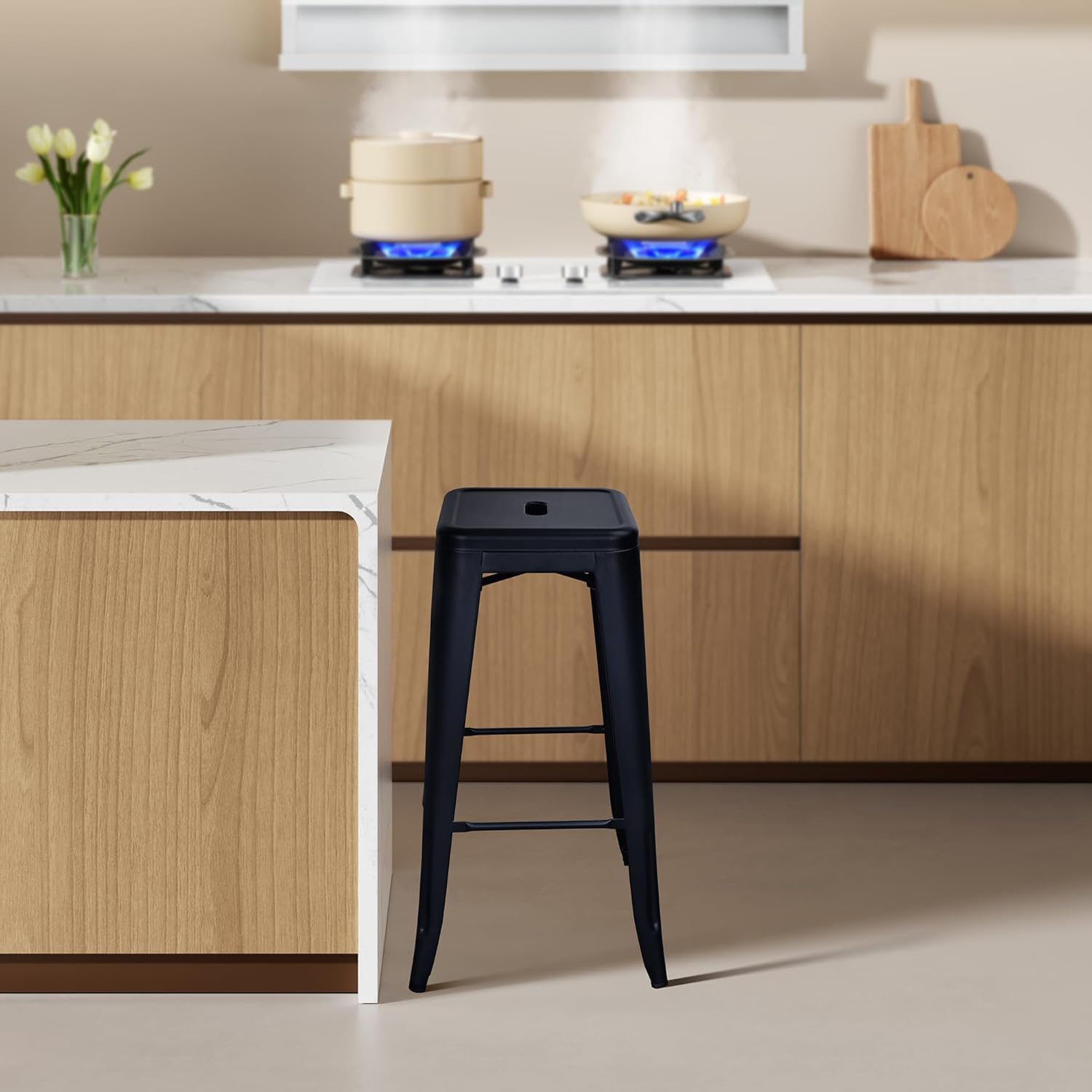 30 Inches Metal Bar Stools, High Backless Stools, Indoor Outdoor Stackable Kitchen Stools, Set of 4, Dark