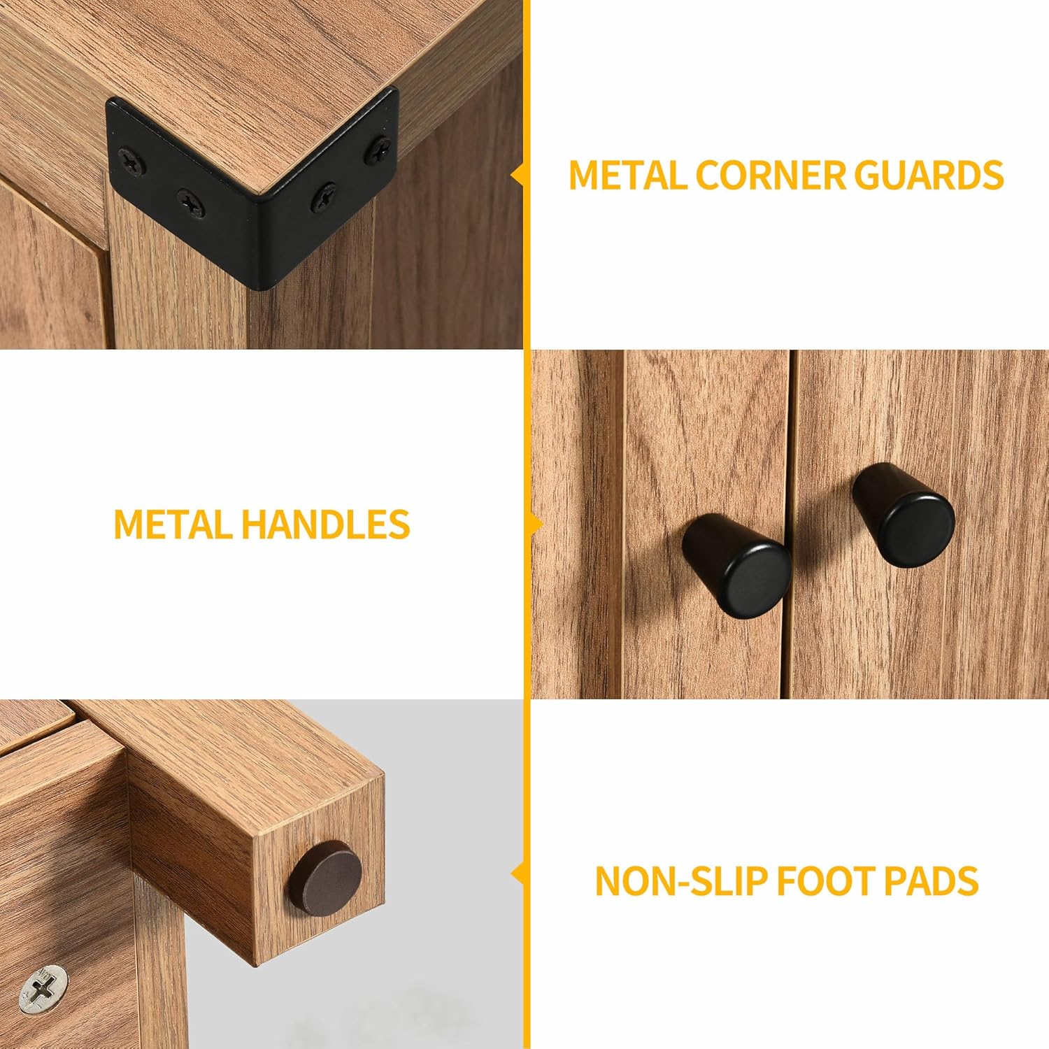 - Reliable Choice: The storage cabinet featuring an anti-toppling design for enhanced safety. With the addition of individual table legs at the bottom center and four metal corner protectors on the tabletop, our sideboard offers exceptional stability and durability