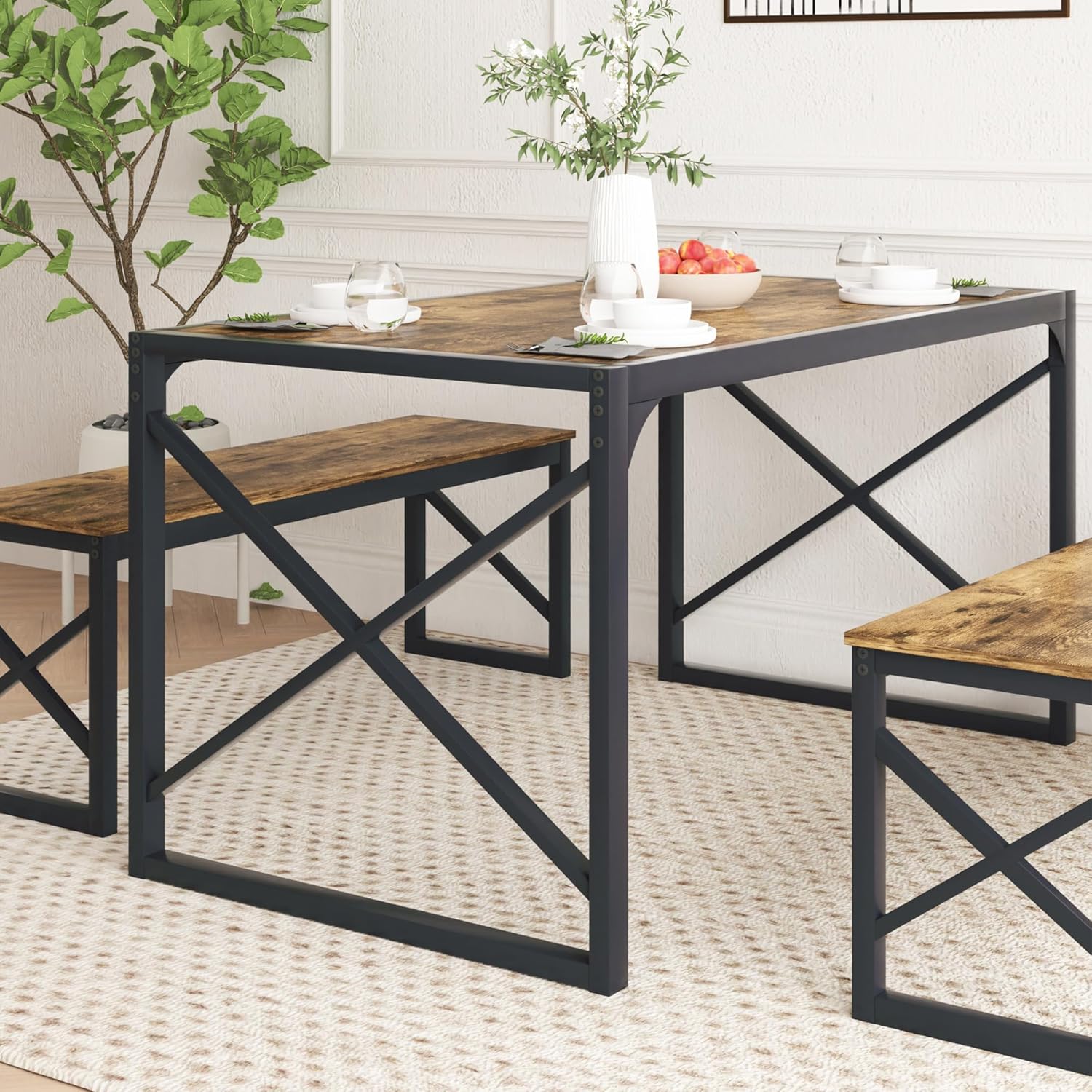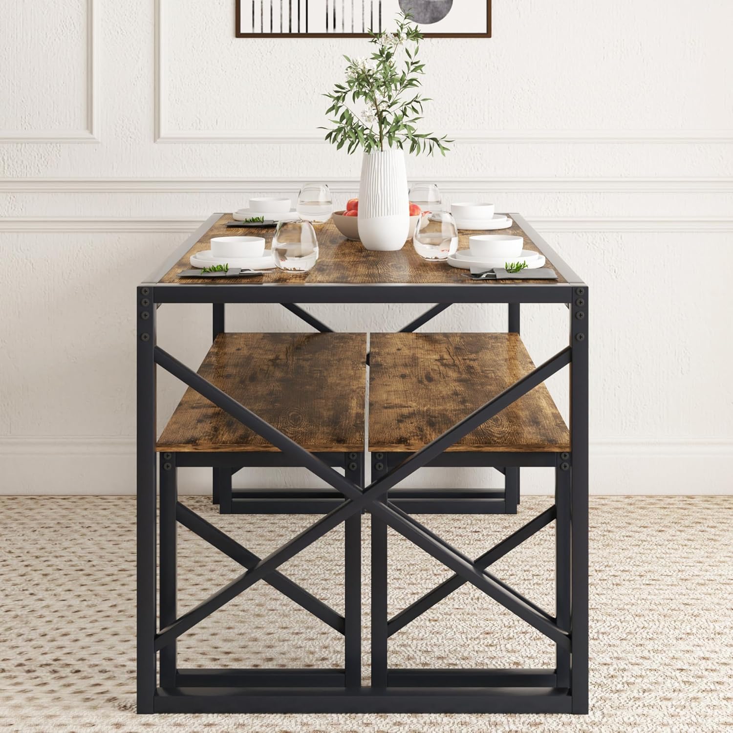 - Perfect for Small Spaces - This Dining Table Set includes a 55" long rectangle Table and 2 47" benches, designed specifically for small spaces. The bench can easily be completely stored underneath the table when not in use, saving you valuable space;