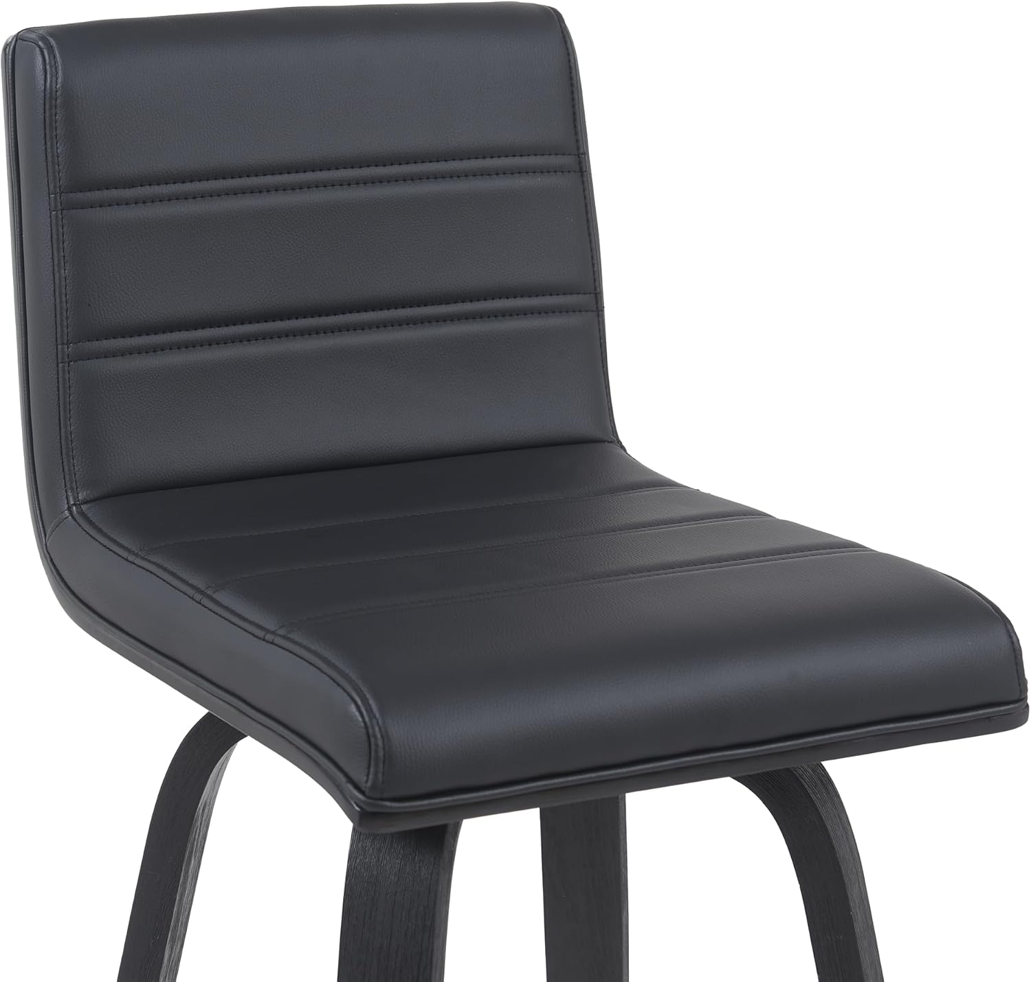 Vienna Modern Counter Height Swivel Bar Stool with Black Faux Leather Seat and Black Brushed Wood Frame Set of 2