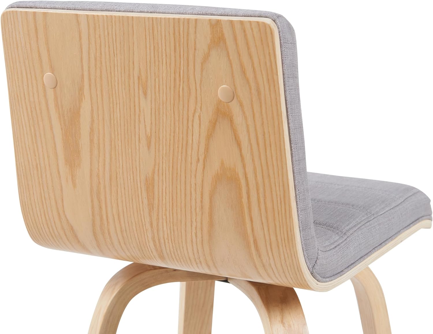 Vienna Modern Swivel Bar Height Stool with Grey Upholstered Seat and Patterned Oak Wood Frame Set of 2