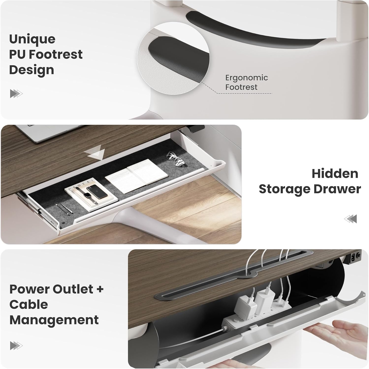 - Hidden Drawer & Organized Workspace: Unlike most standing desks, this one includes a large built-in drawer (25" wide) for easy storage of laptops, notebooks, and accessories. Combined with a rear cable tray + desktop grommet, it keeps your workstation clean, organized, and distraction-free.