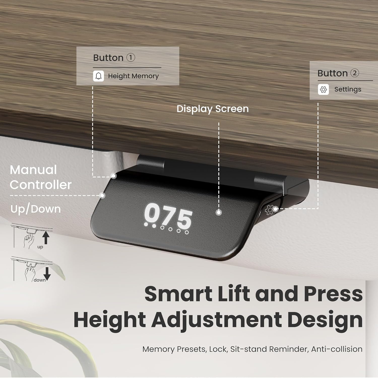 - Whisper-Quiet Dual-Motor Lift: The powerful dual-motor system operates smoothly and quietly under 50dB, lifting at 35mm/s. Adjust between 29.1"–47.6"with just a touch. Two memory presets with child lock allow quick sit-stand transitions while keeping your settings safe.